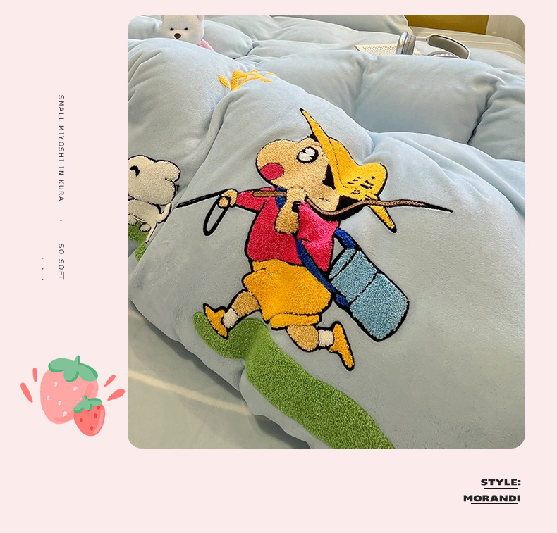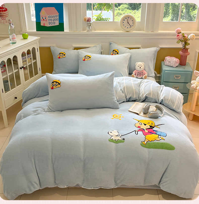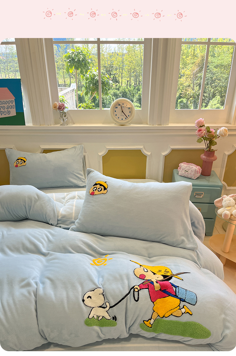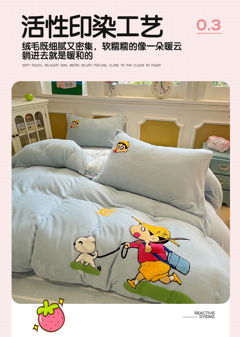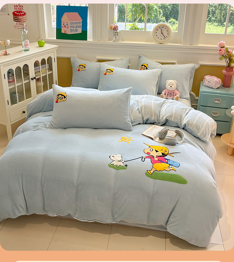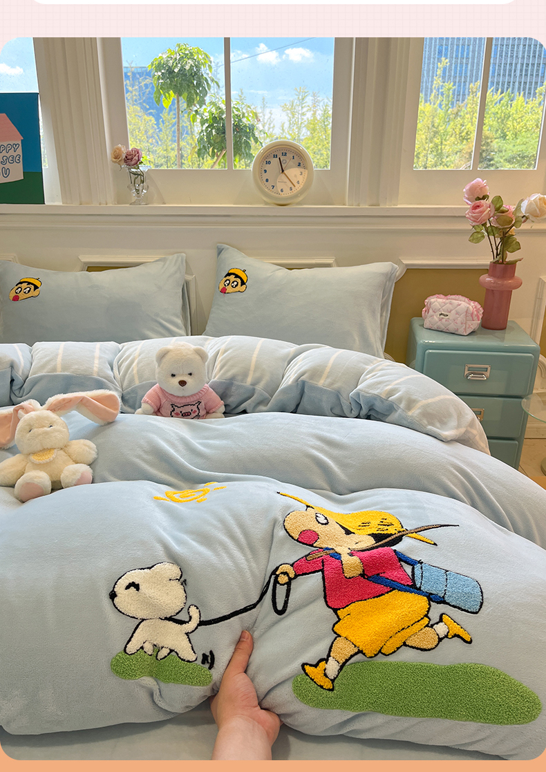 星座家纺 2025新款A类卡通200g牛奶绒毛巾绣四件套 春日漫游