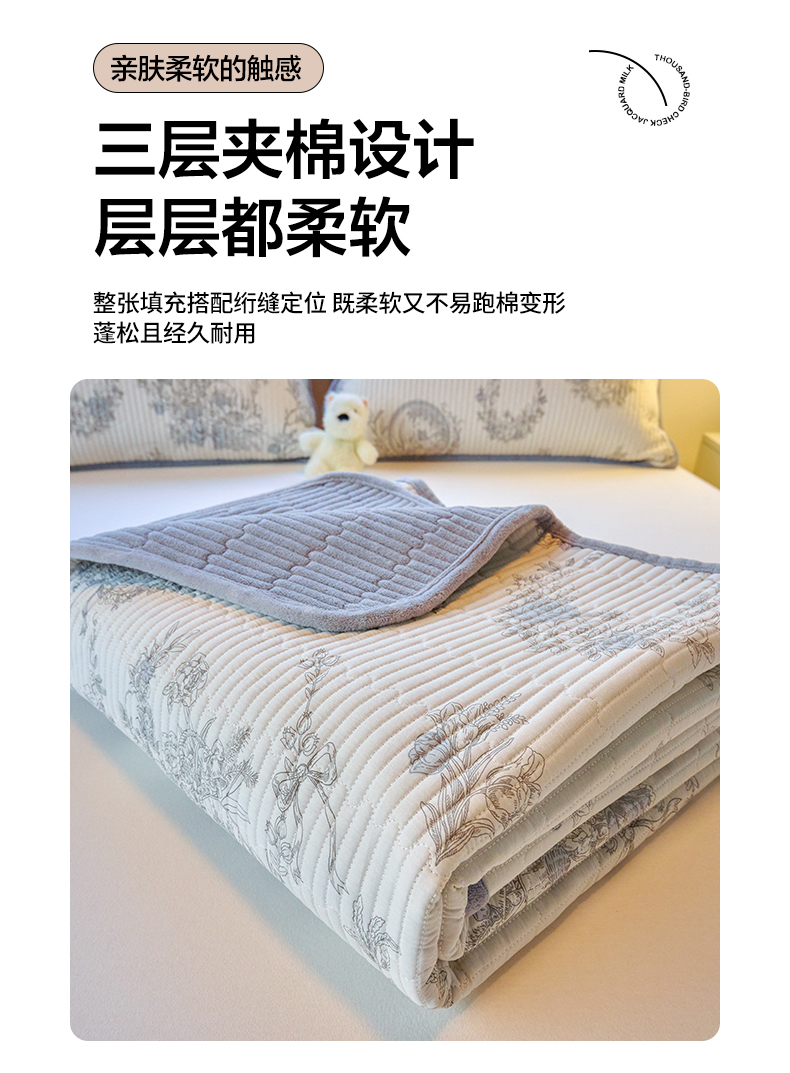 小叮当家纺仓储工厂店 2025新款棉加绒床垫一面全棉一面牛奶绒床褥垫软床垫床盖四季通用 莫奈花园(A棉B绒)