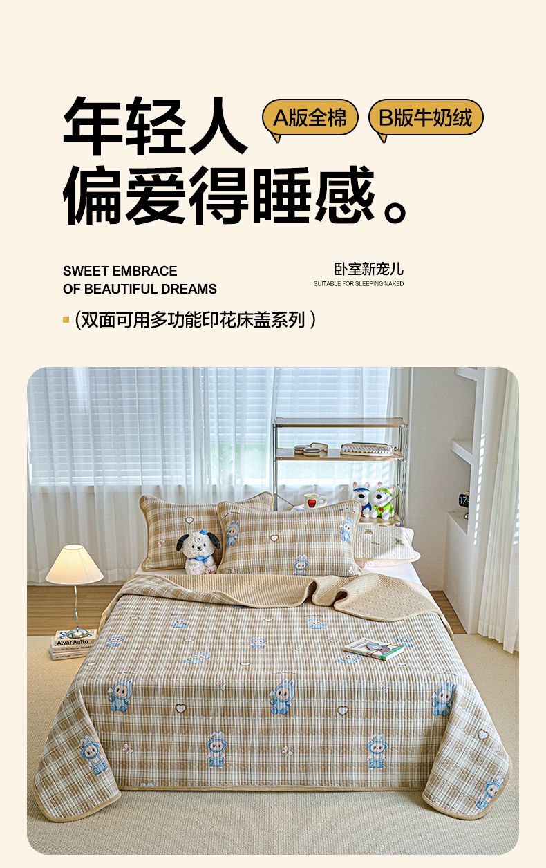 小叮当家纺仓储工厂店 2025新款A版全棉B版牛奶绒床盖系列单床盖床盖单件 拉布兔兔(A棉B绒)