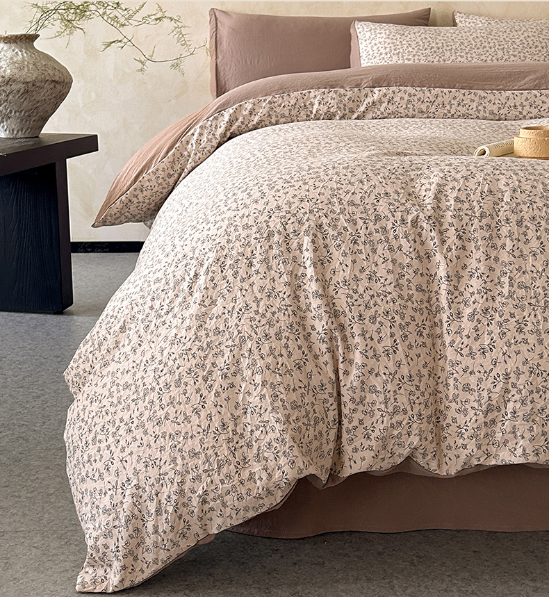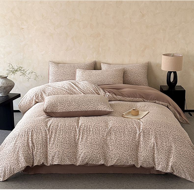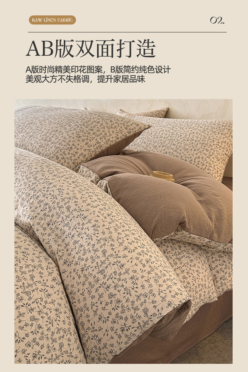(总)如约 2025新款A类亲肤水洗原麻印花四件套,枫林晚,风木槿咖,慕雪红,锦瑟,迪奥咖,俏颜,可颂咖,可颂灰,风木槿紫,迪奥兰,可颂绿