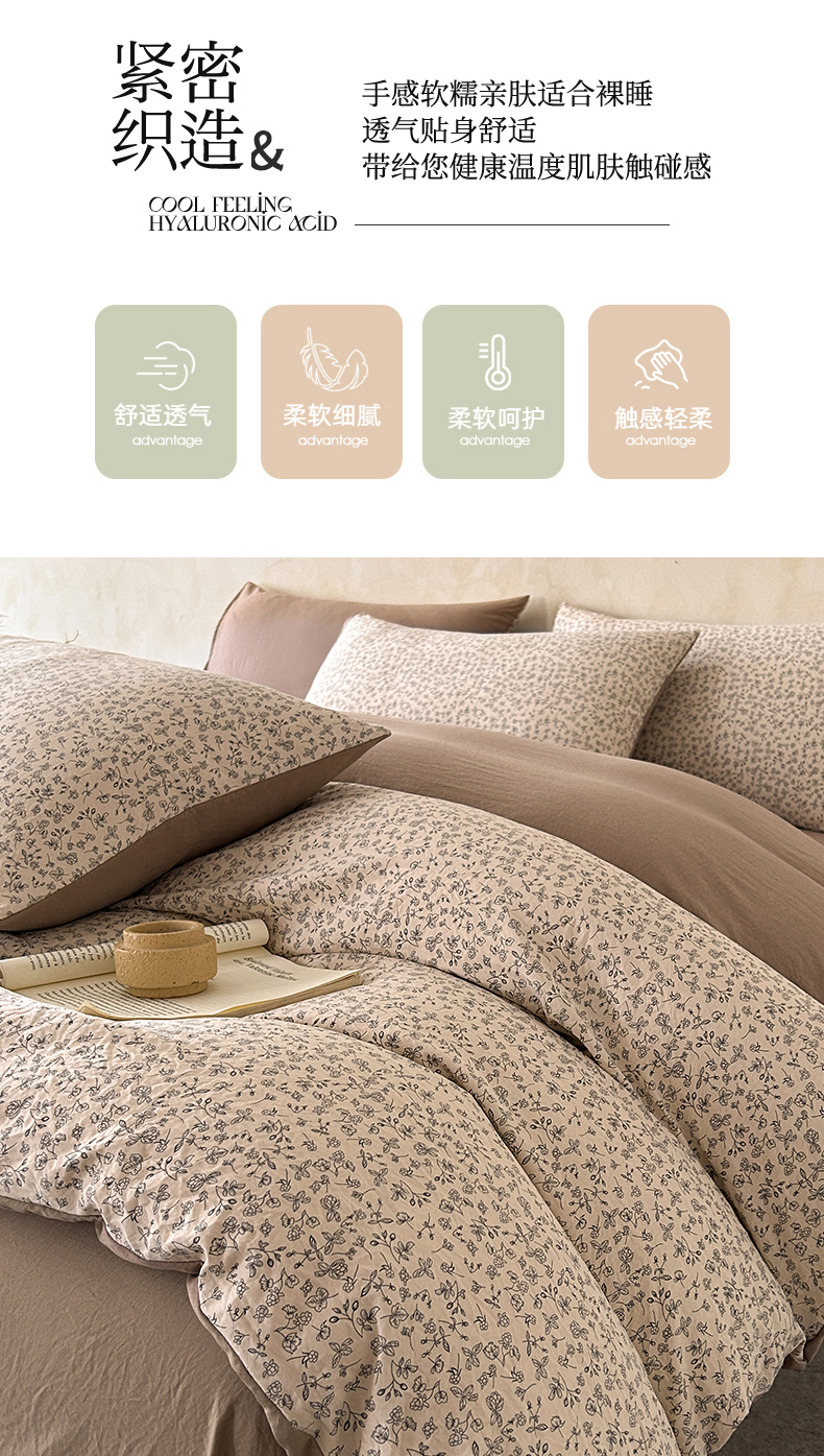 (总)如约 2025新款木棉双层纱印花四件套,小花蔷薇粉,春日来信,朝颜,邂逅,露华浓,草木集黄,写意兰,旧日告白,往事咖,罗格先生兰,小花巧克力棕,小花抹茶绿