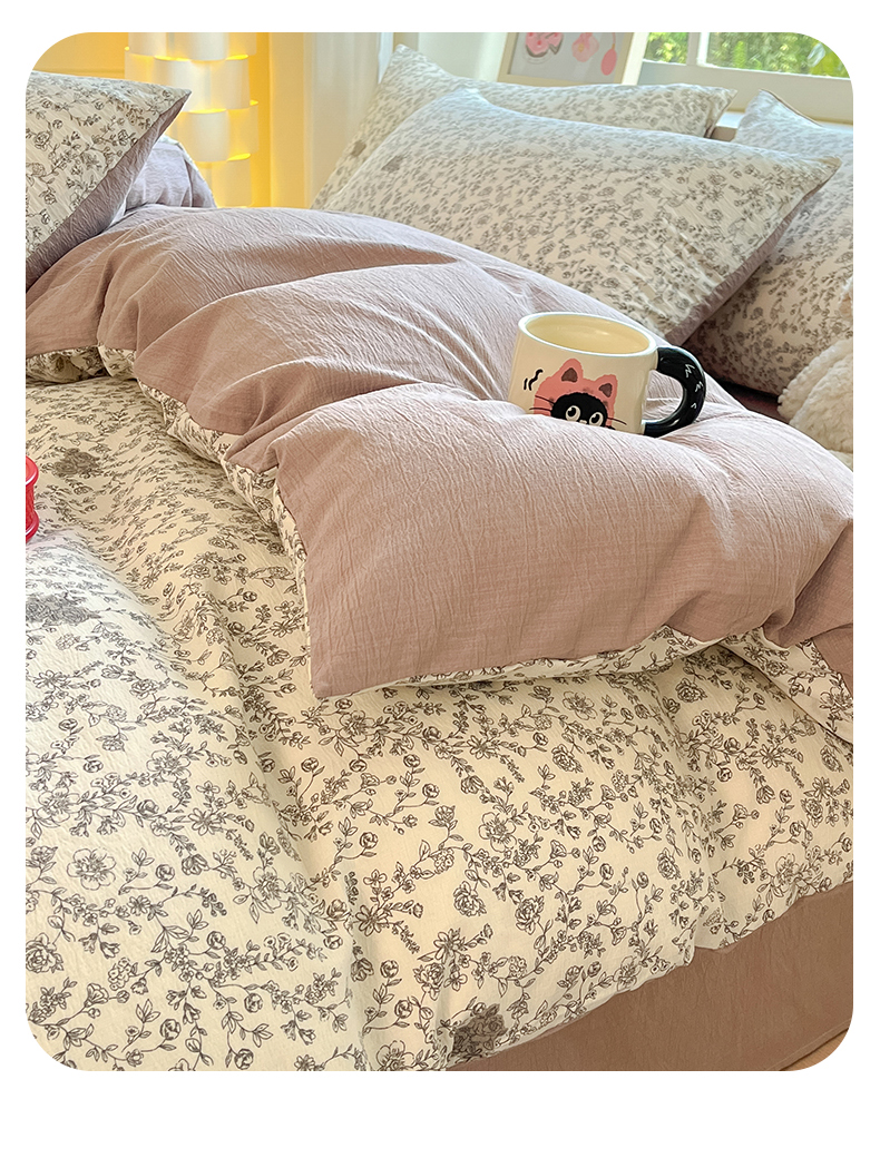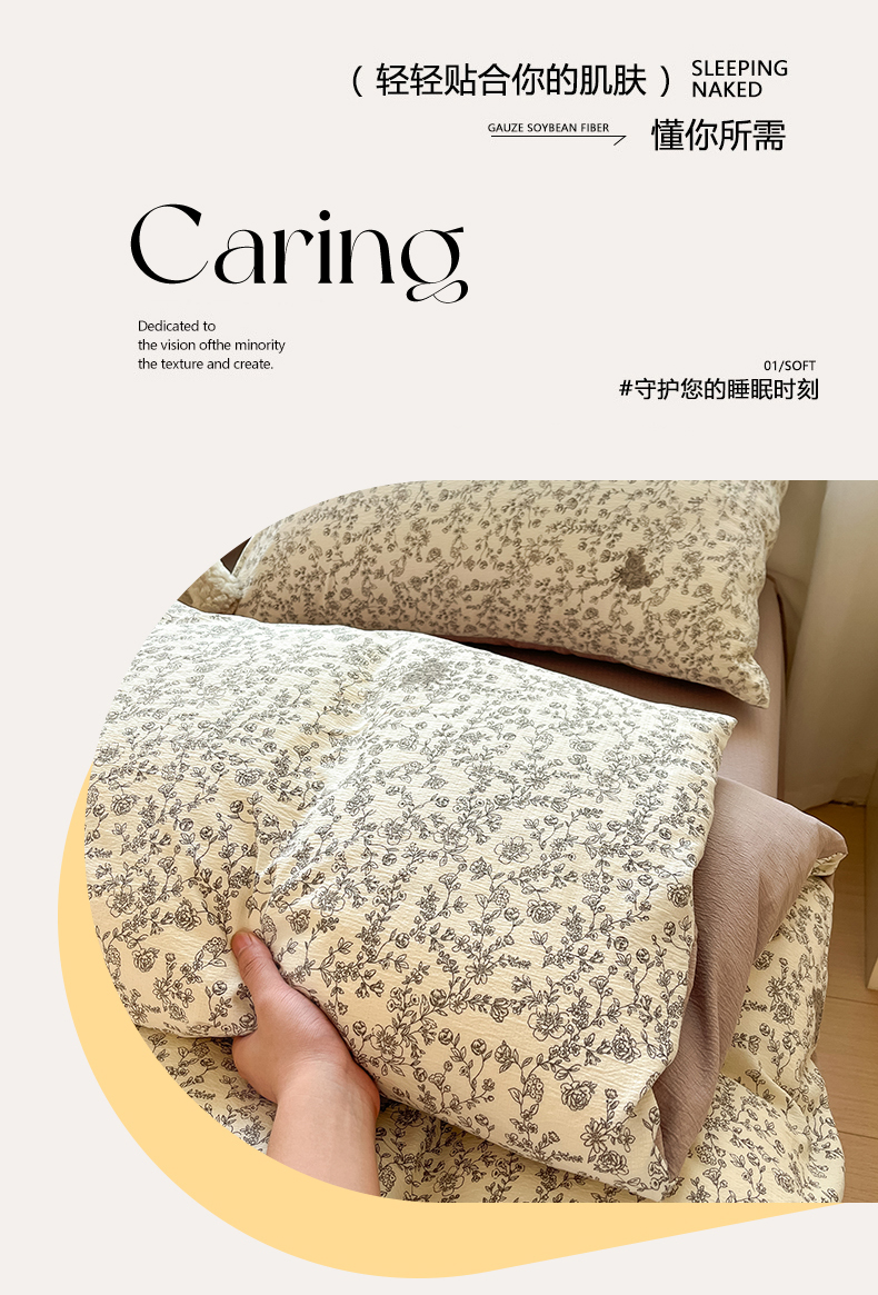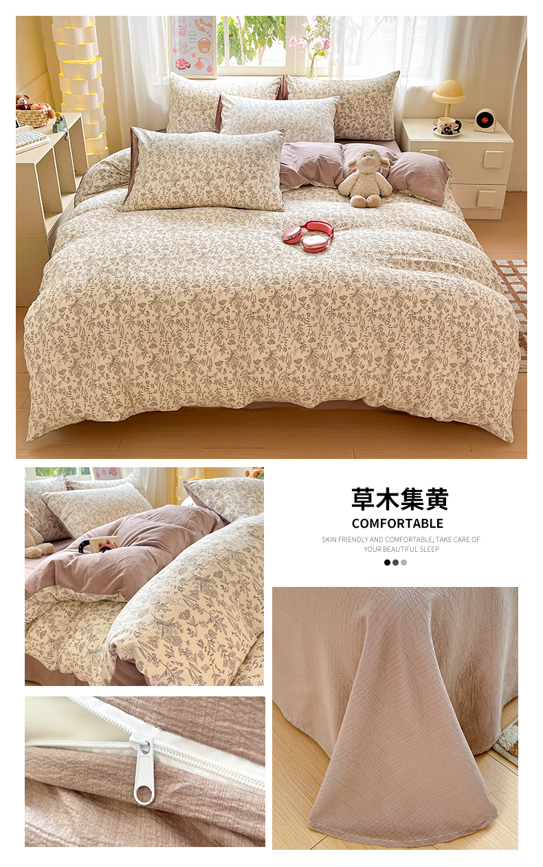 (总)如约 2025新款木棉双层纱印花四件套,小花蔷薇粉,春日来信,朝颜,邂逅,露华浓,草木集黄,写意兰,旧日告白,往事咖,罗格先生兰,小花巧克力棕,小花抹茶绿