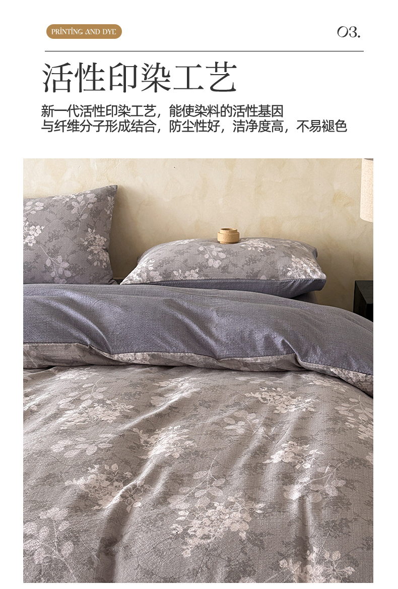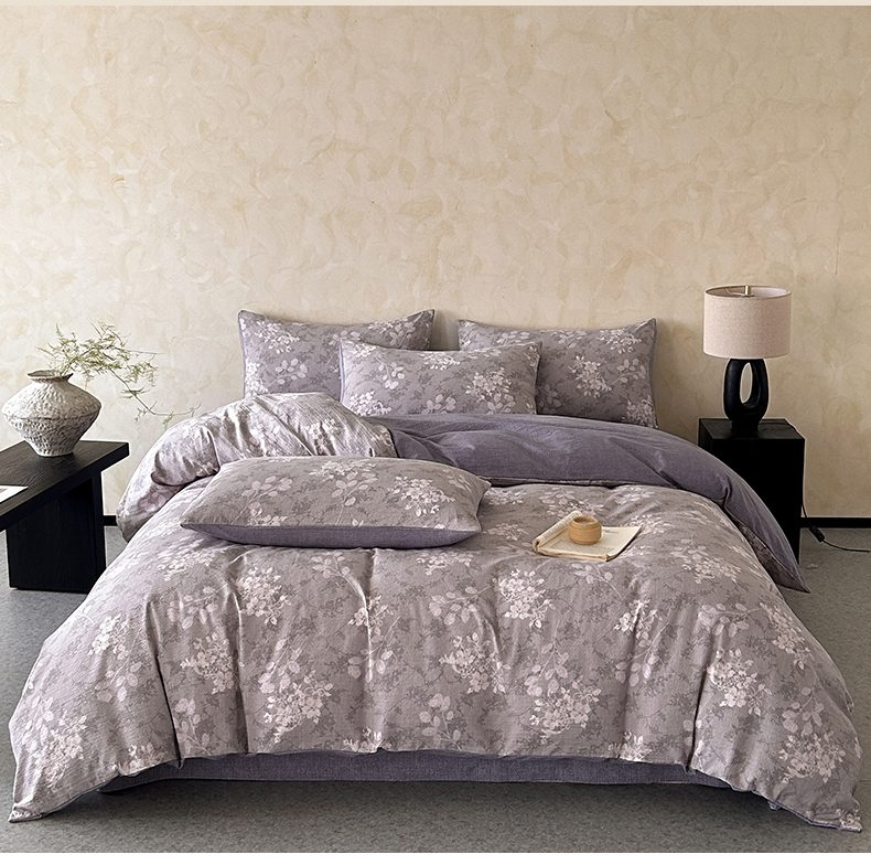 如约 2025新款A类亲肤水洗原麻印花四件套 可颂灰