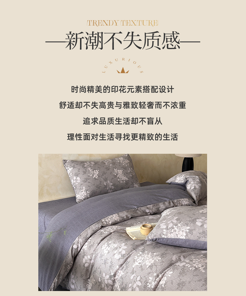 商品名称:如约 2025新款A类亲肤水洗原麻印花四件套 可颂灰
