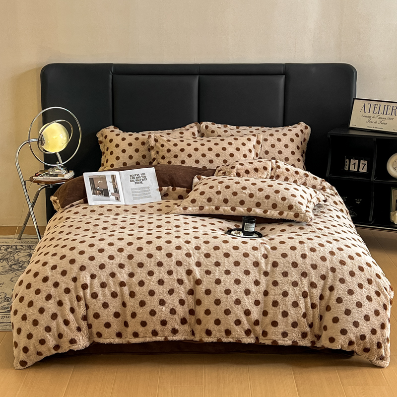 典曼家纺 2025新款亲肤舒适兔毛绒四件套 蝴蝶结点点-咖