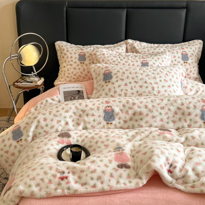 (总)典曼家纺 2025新款亲肤舒适兔毛绒四件套-系列二,斑马纹,可爱多,马格丽,魔法学院红,魔法学院蓝,晚秋,小淘气,英伦时尚