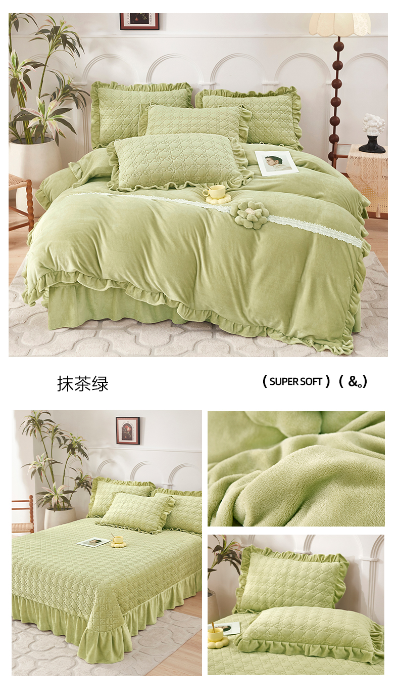 (总)卡迪亚家纺 2025新款牛奶绒床盖款荷叶边四件套-花颜,花颜-春湖绿,花颜-豆沙红,花颜-高级灰,花颜-活力蓝,花颜-魅力紫,花颜-抹茶绿,花颜-胭脂粉
