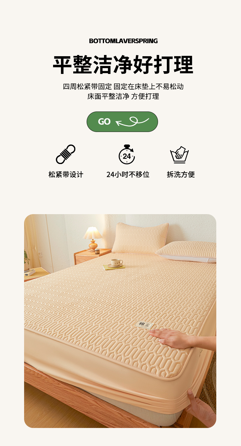 商品名称:曼陀罗 2025新款A类新疆棉花夹棉防水床笠 小竹纹-卡其