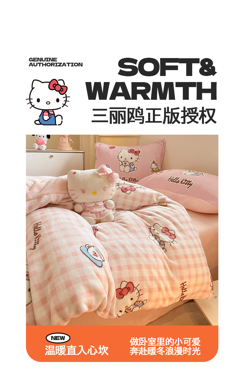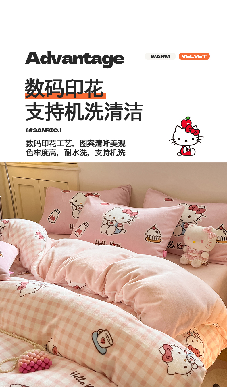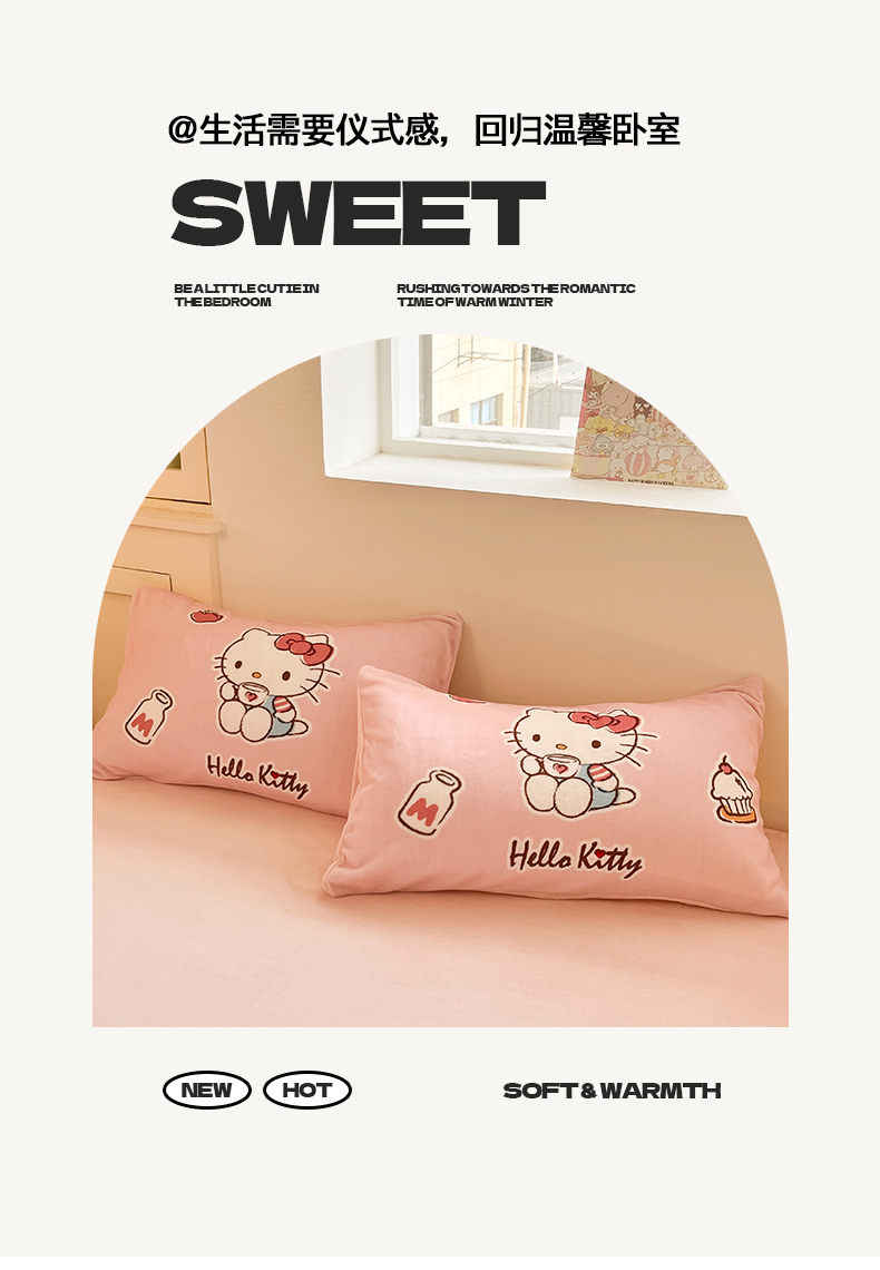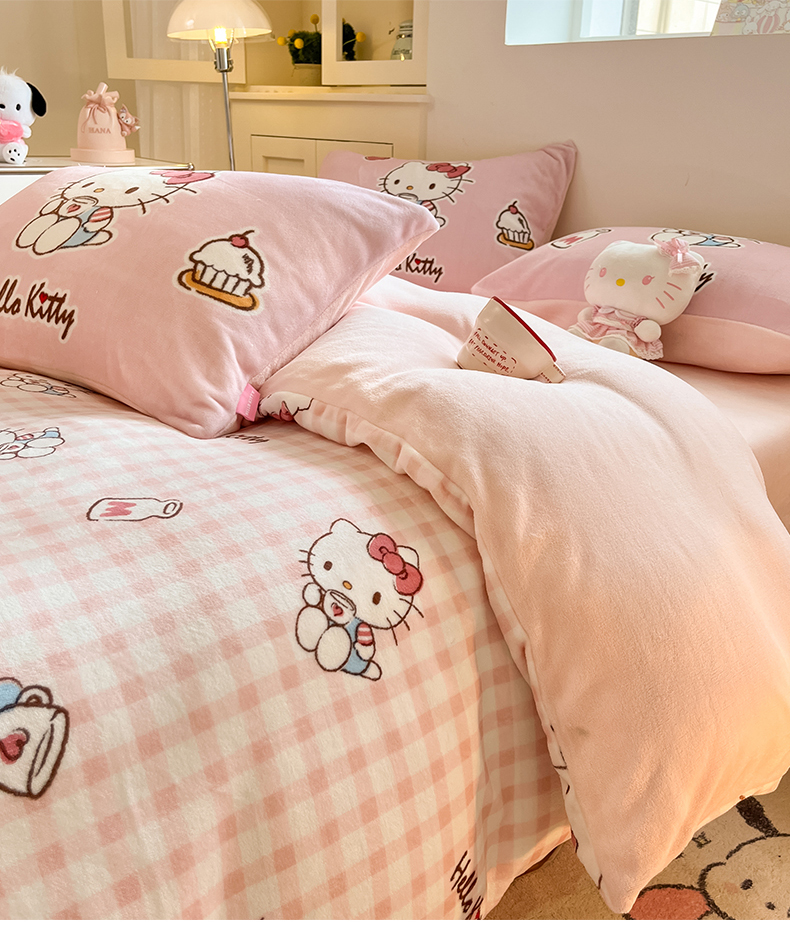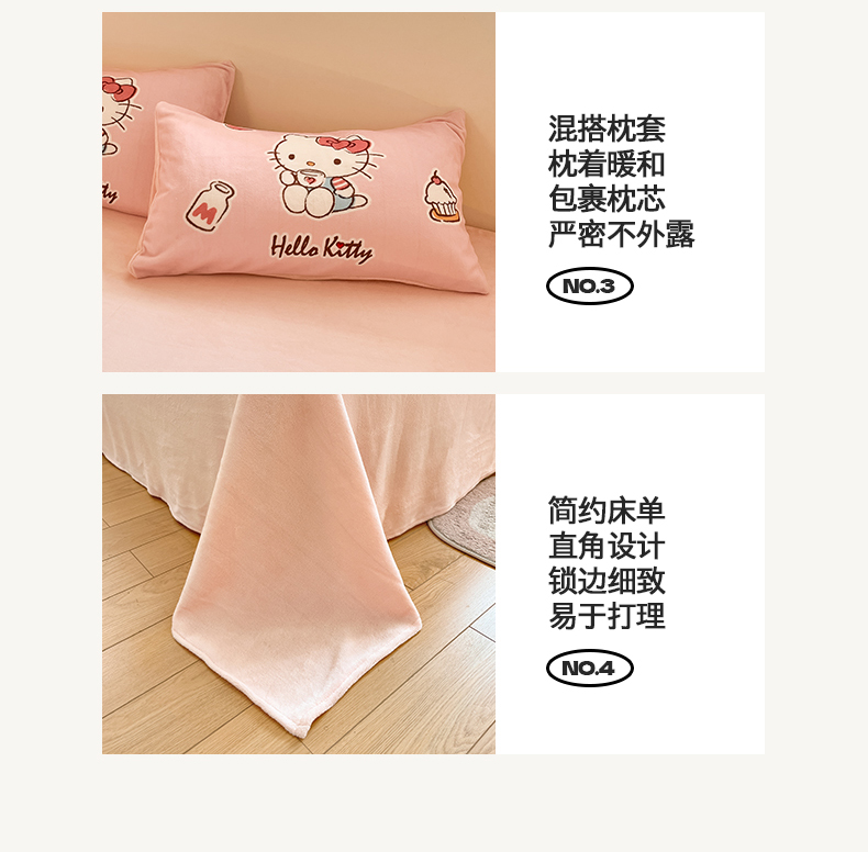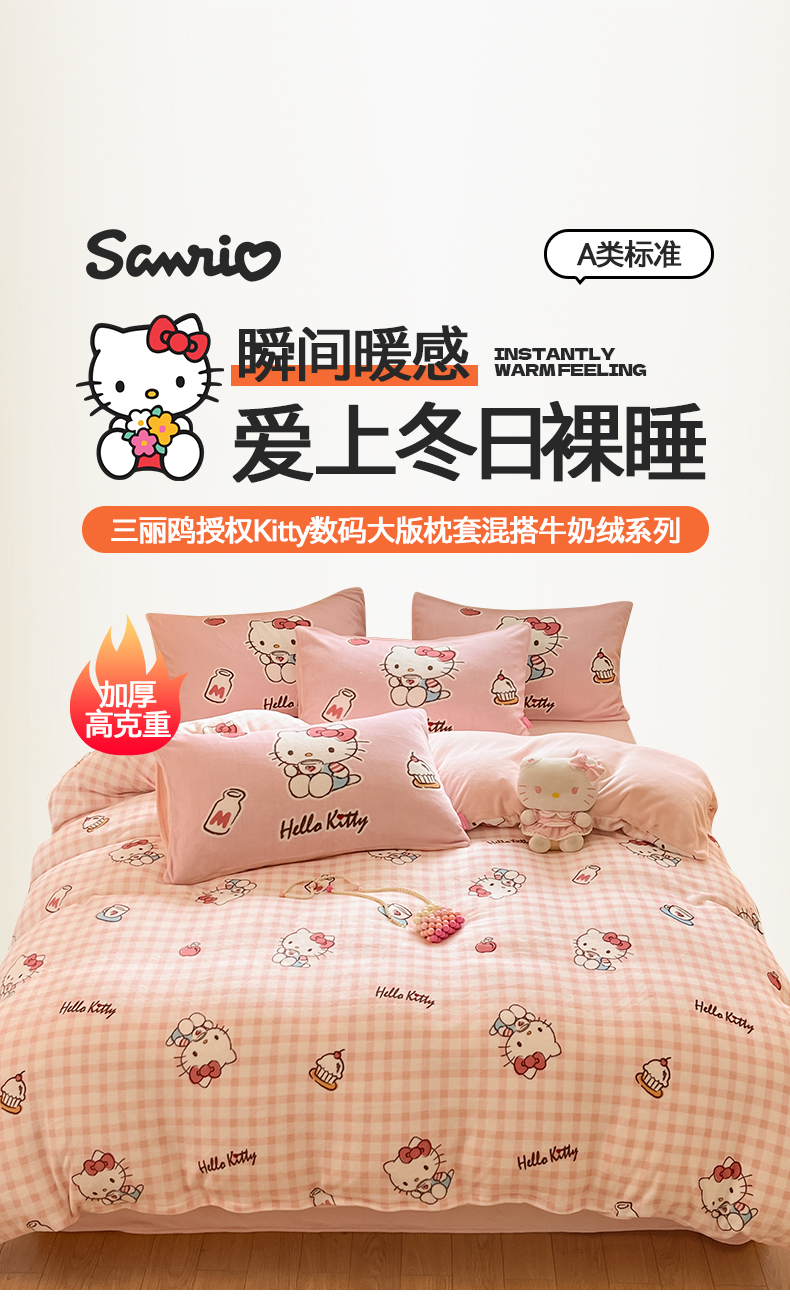 当前位置: 91家纺网 > 商品网购 > 床品套件 > 四件套 > 牛奶绒四件套 > 桃子家居 2025新品正版三丽鸥授权Kitty数码大版枕套混搭卡通加厚高克重牛奶绒系列四件套单品 绒三丽鸥-混搭粉甜心KT
