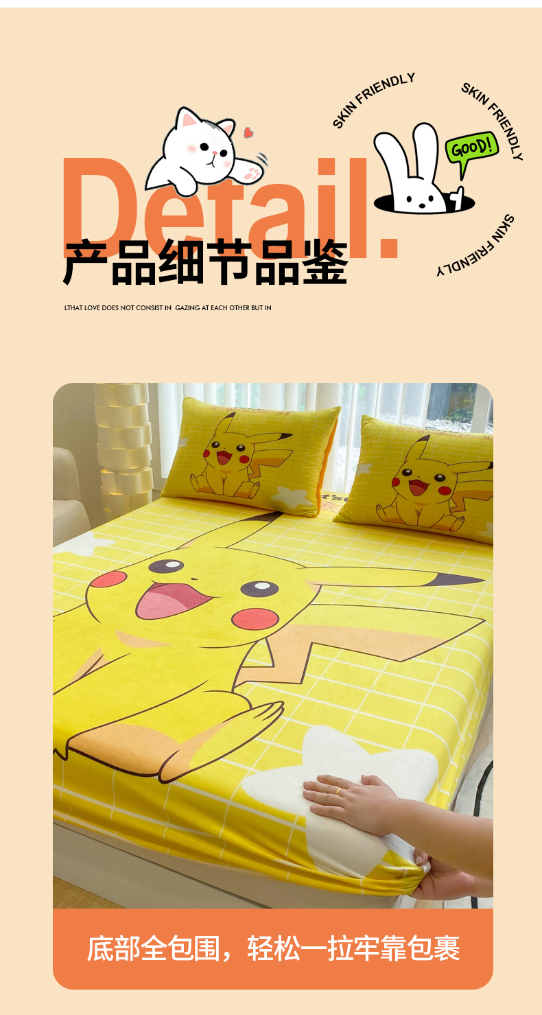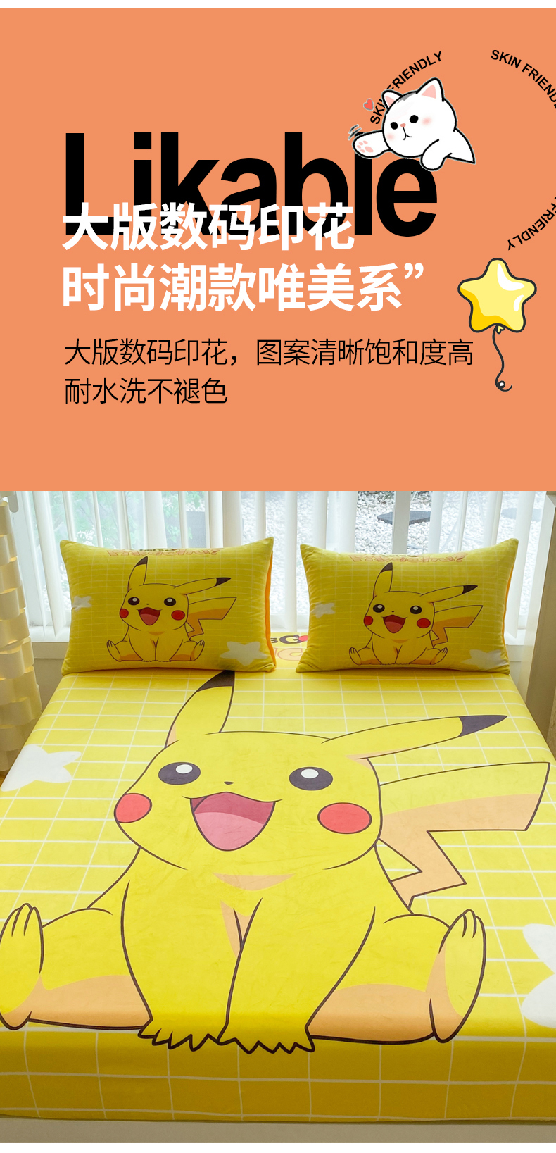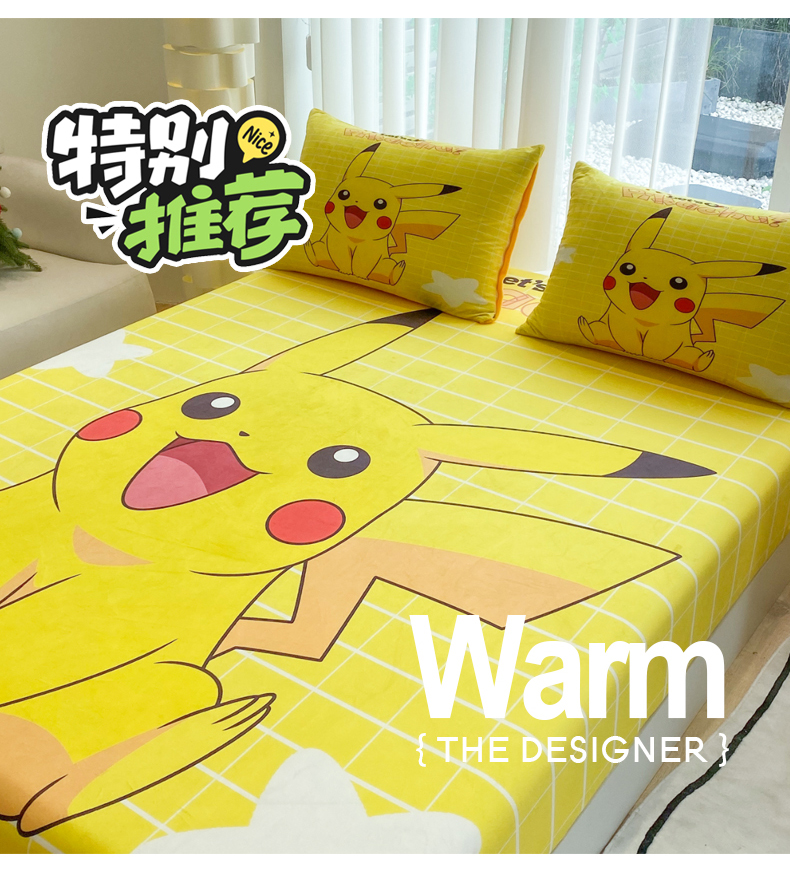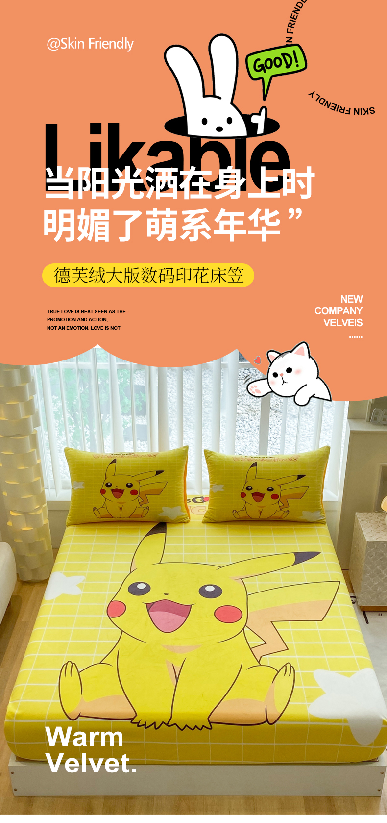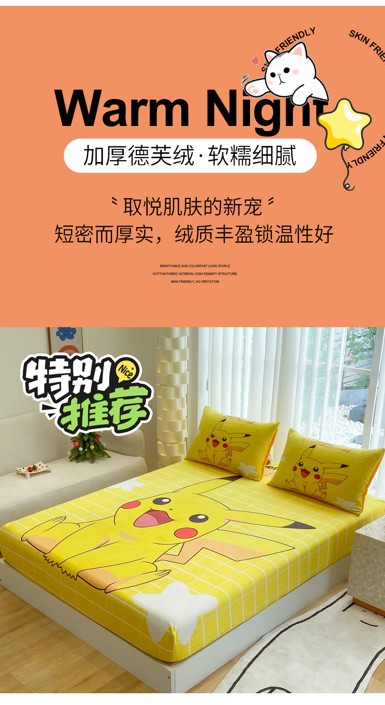 • 91家纺网 家纺一手货源 找家纺 一电 2025新款跨境电商床笠冬天德芙绒床笠单件加绒加厚绒床罩儿童学生宿舍床垫套床笠罩 网红皮卡丘