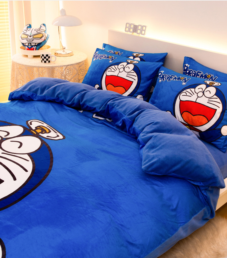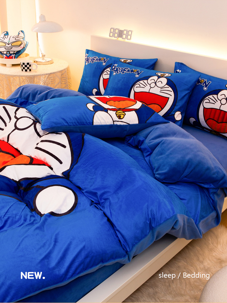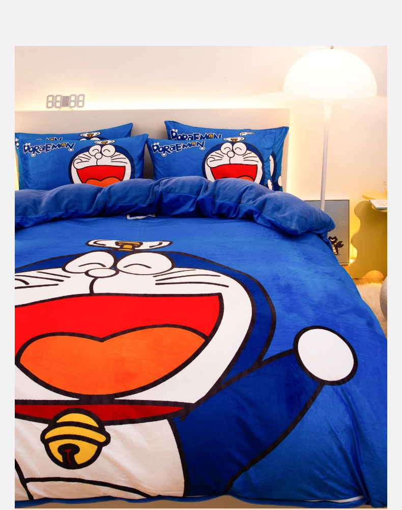 一电 2025外贸跨境电商儿童卡通床上四件套亲肤牛奶绒学生三件床单被套加大珊瑚宝宝卡通 叮当快跑