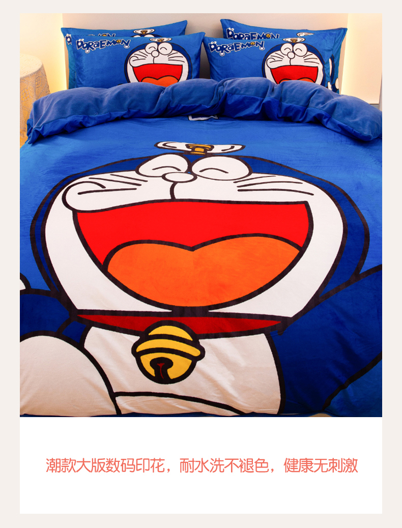 商品名称:一电 2025外贸跨境电商儿童卡通床上四件套亲肤牛奶绒学生三件床单被套加大珊瑚宝宝卡通 叮当快跑