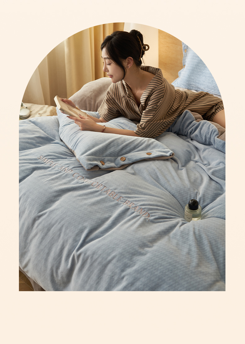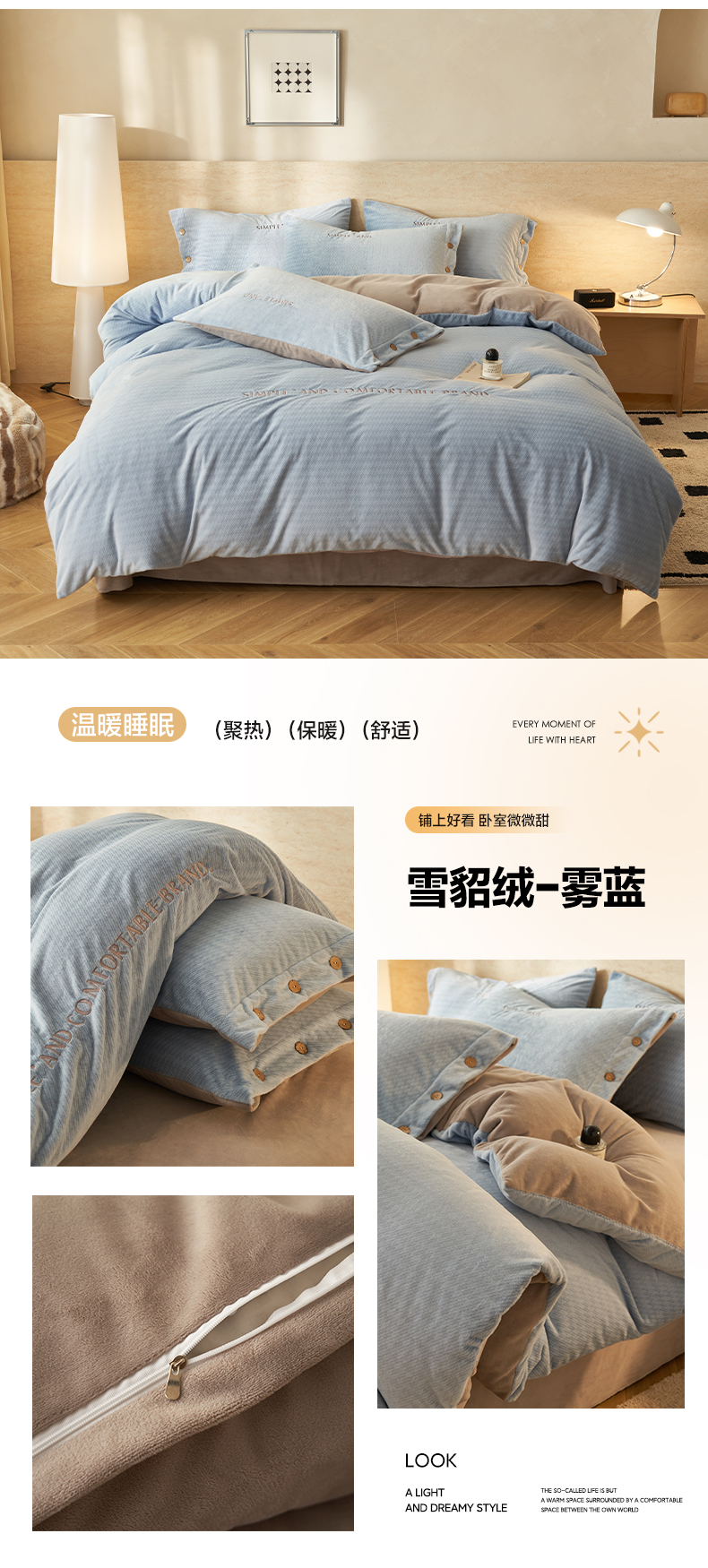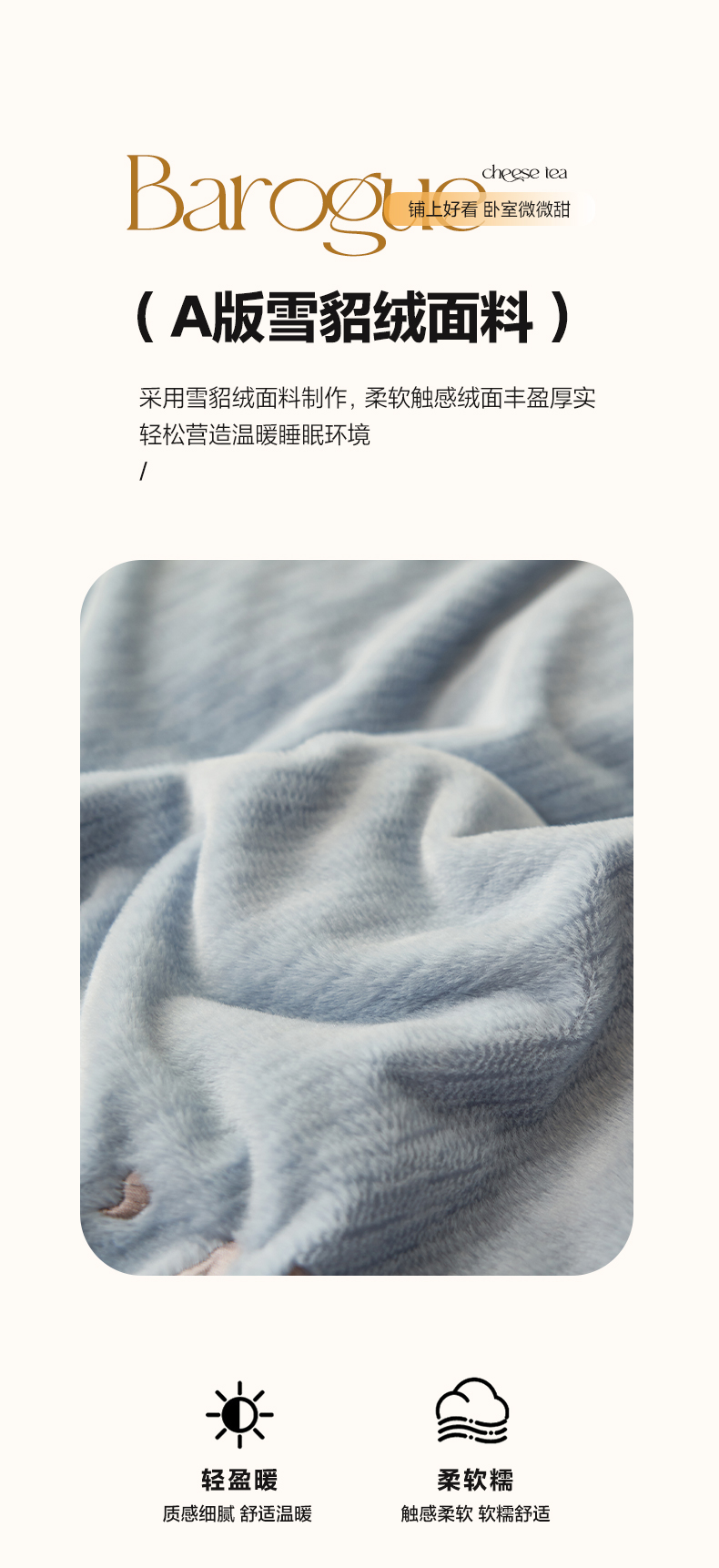当前位置: 91家纺网 > 商品网购 > 床品套件 > 四件套 > 牛奶绒四件套 > 寐绸家纺 2025秋冬新款230g雪貂绒阳离子提花牛奶绒四件套 雪貂绒-雾蓝