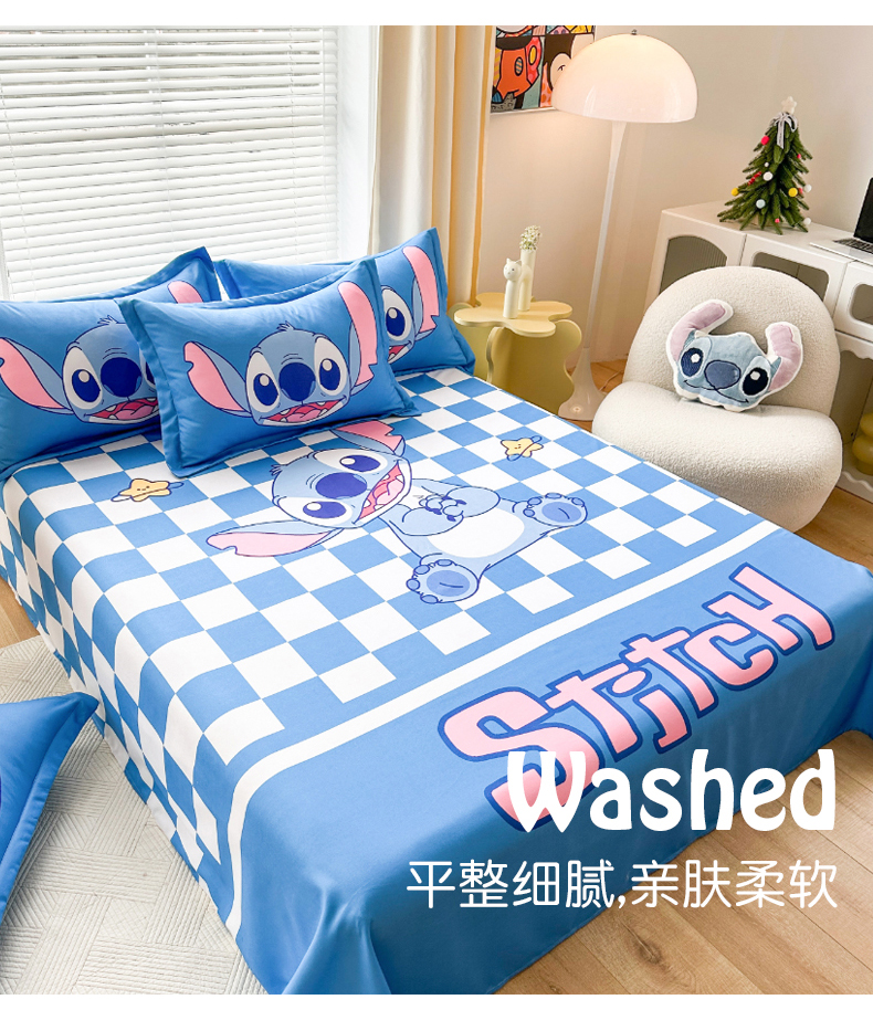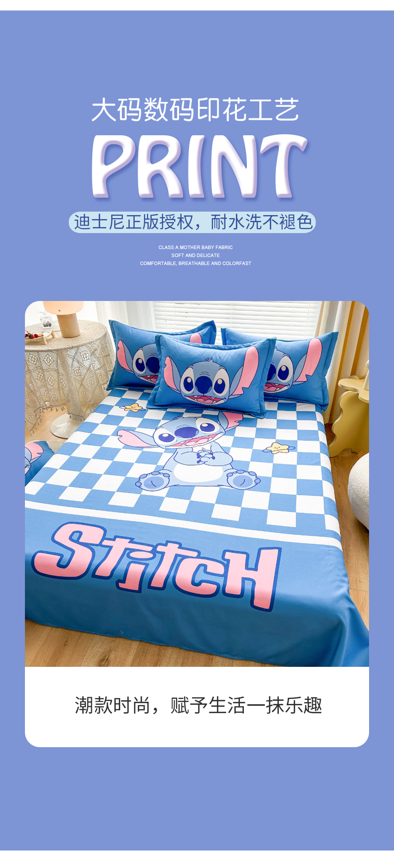 • 91家纺网 家纺一手货源 找家纺 一电 2025新款卡通床单单件被单学生宿舍被罩三件套单人儿童上下床床单-第三批 蓝格史迪仔