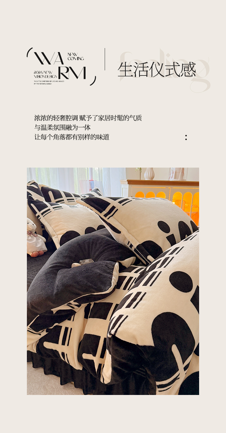 当前位置: 91家纺网 > 商品网购 > 床品套件 > 四件套 > 牛奶绒四件套 > 梵克保罗 2025秋冬新款印花牛奶绒床盖炕垫炕盖四件套-云裳 云裳-字母im