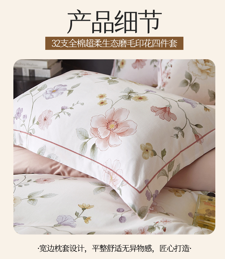商品名称:品乐家纺 2025新款32支超柔生态磨毛四件套 芷柔-粉