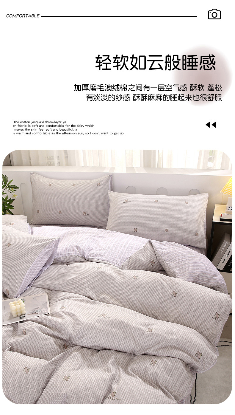 当前位置: 91家纺网 > 商品网购 > 床品套件 > 四件套 > 其它四件套 > 织写 2025新款加厚磨毛澳绒棉四件套 欢喜时光
