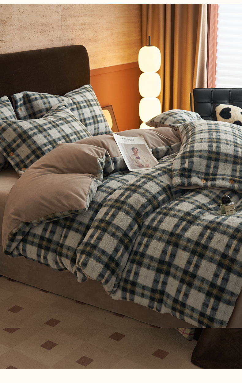 商品名称:早晨家纺 2025新款230g羊驼绒复古格牛奶绒四件套 威尔士亲格