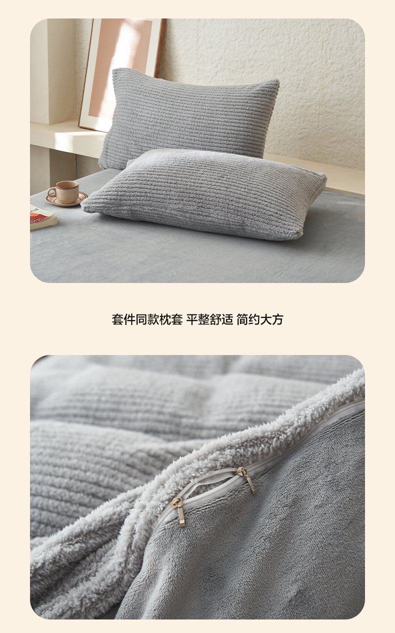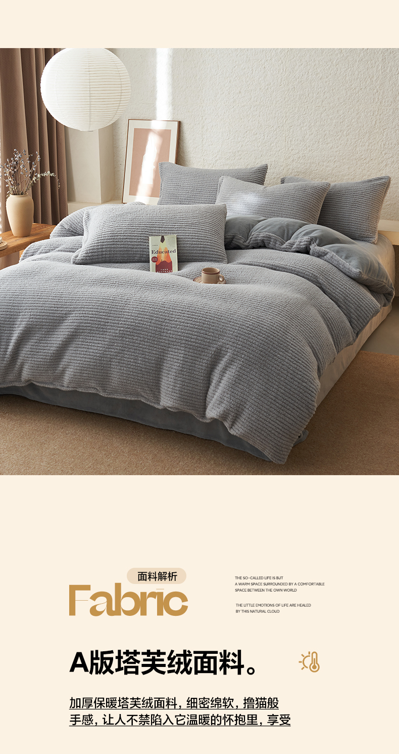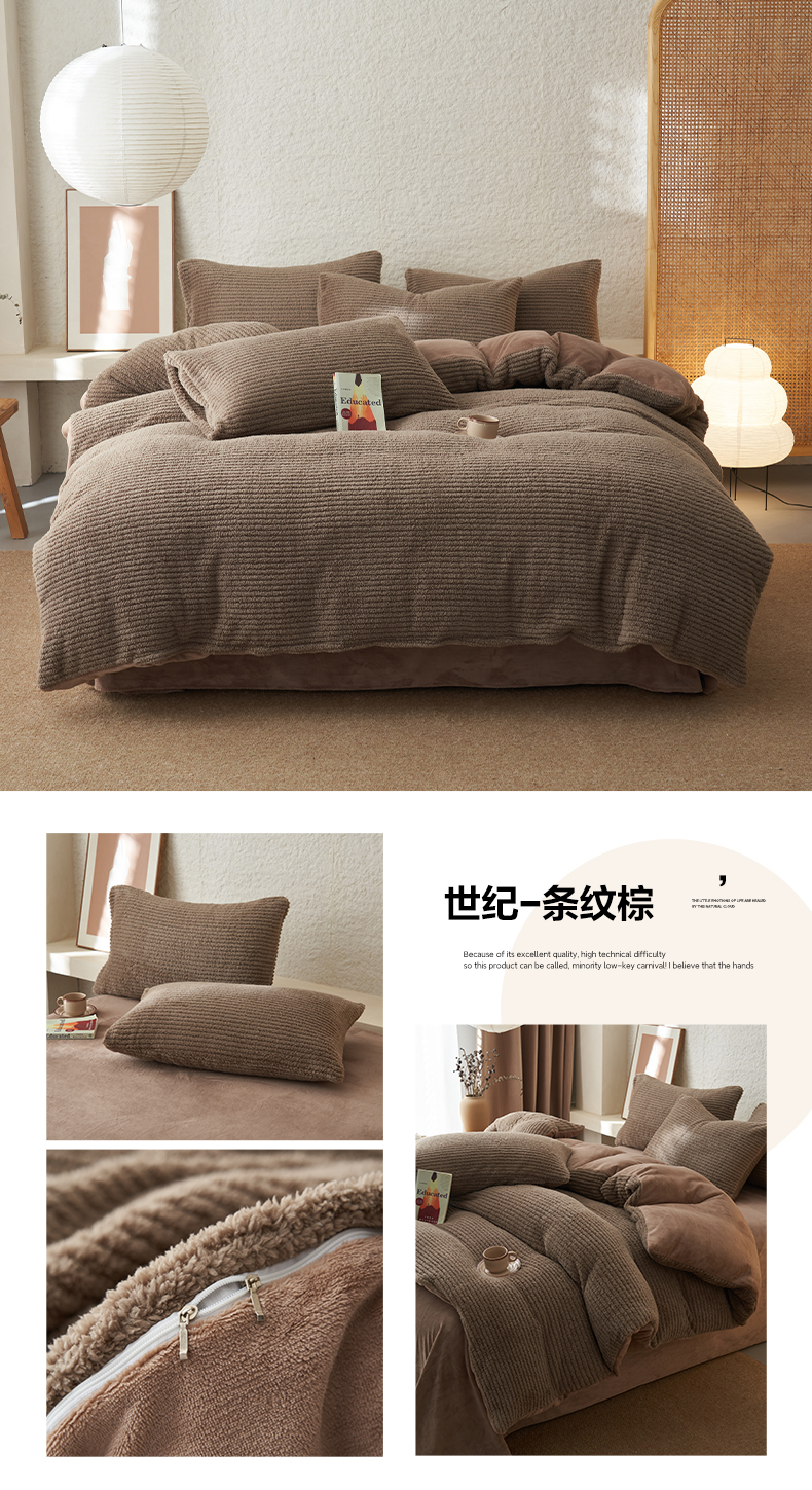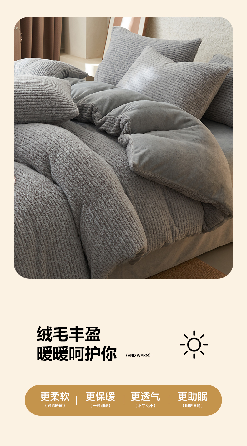 商品名称:早晨家纺 2025新款世纪款塔芙蓉牛奶绒四件套 世纪-条纹灰