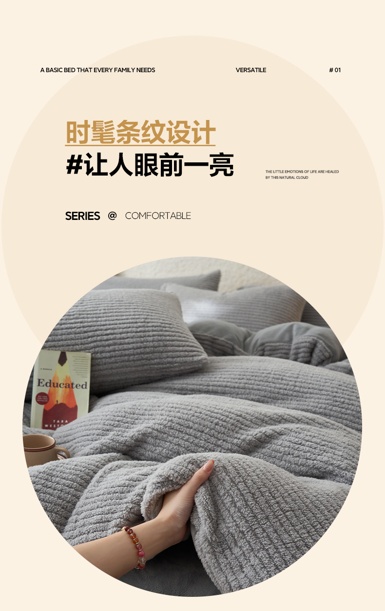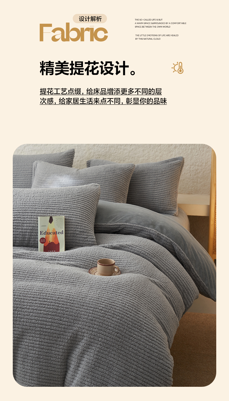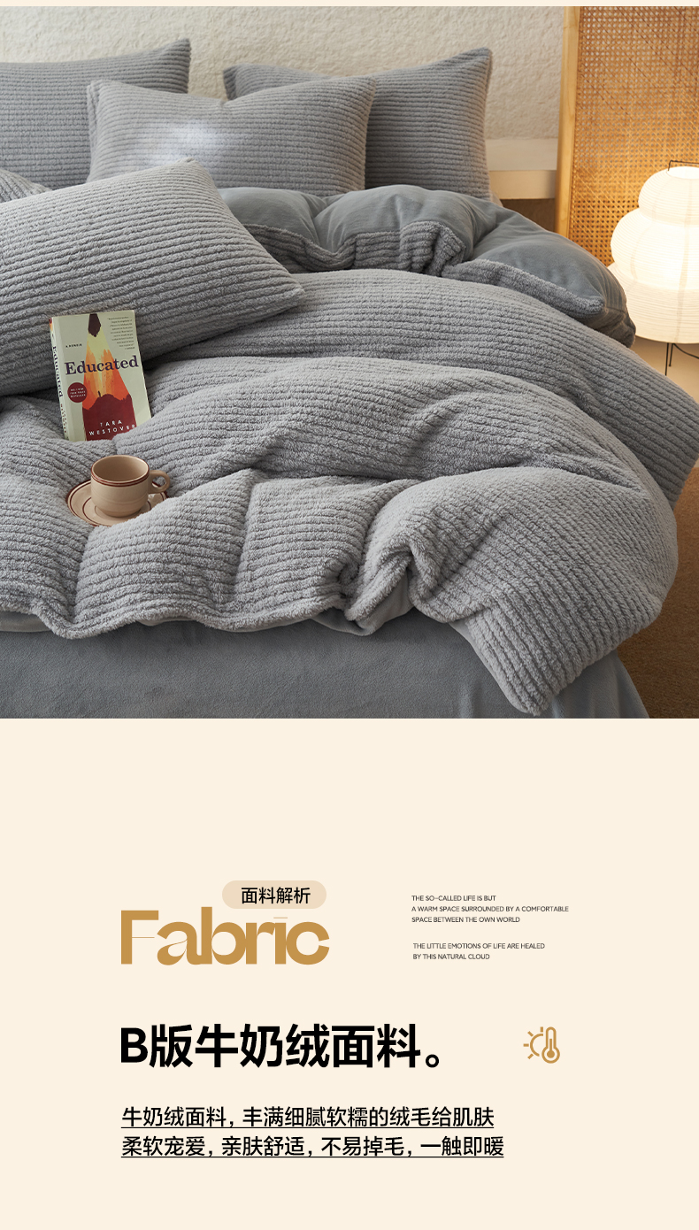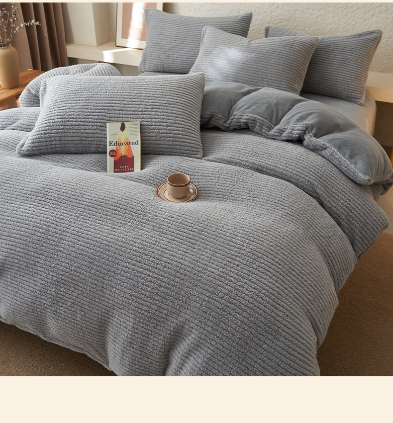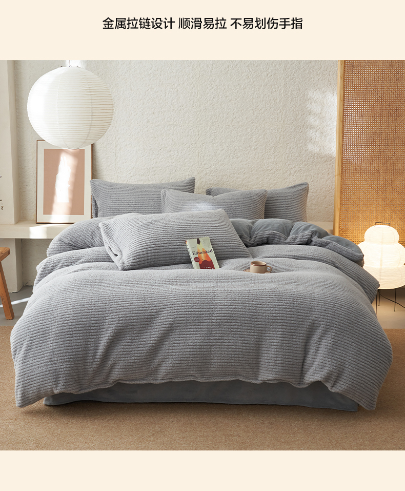 商品名称:早晨家纺 2025新款世纪款塔芙蓉牛奶绒四件套 世纪-条纹灰
