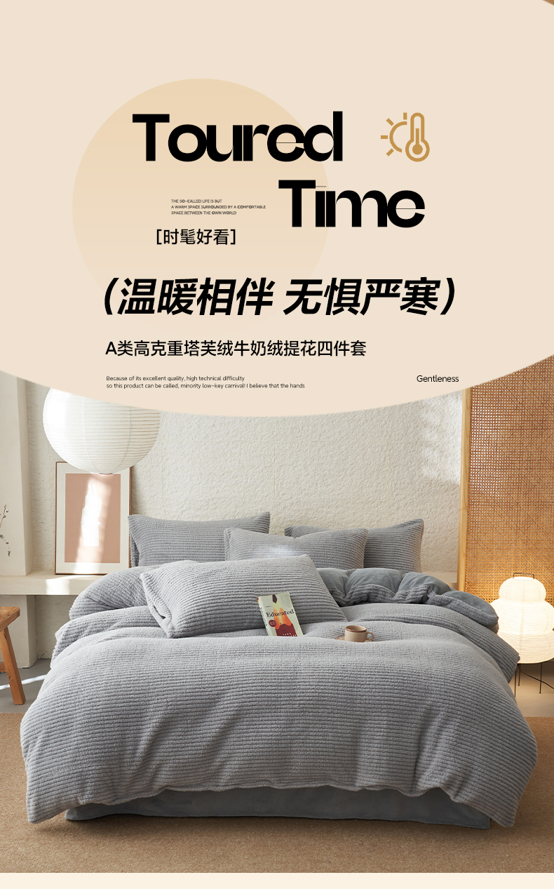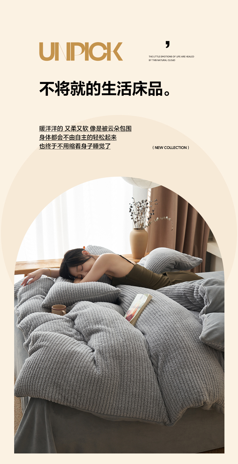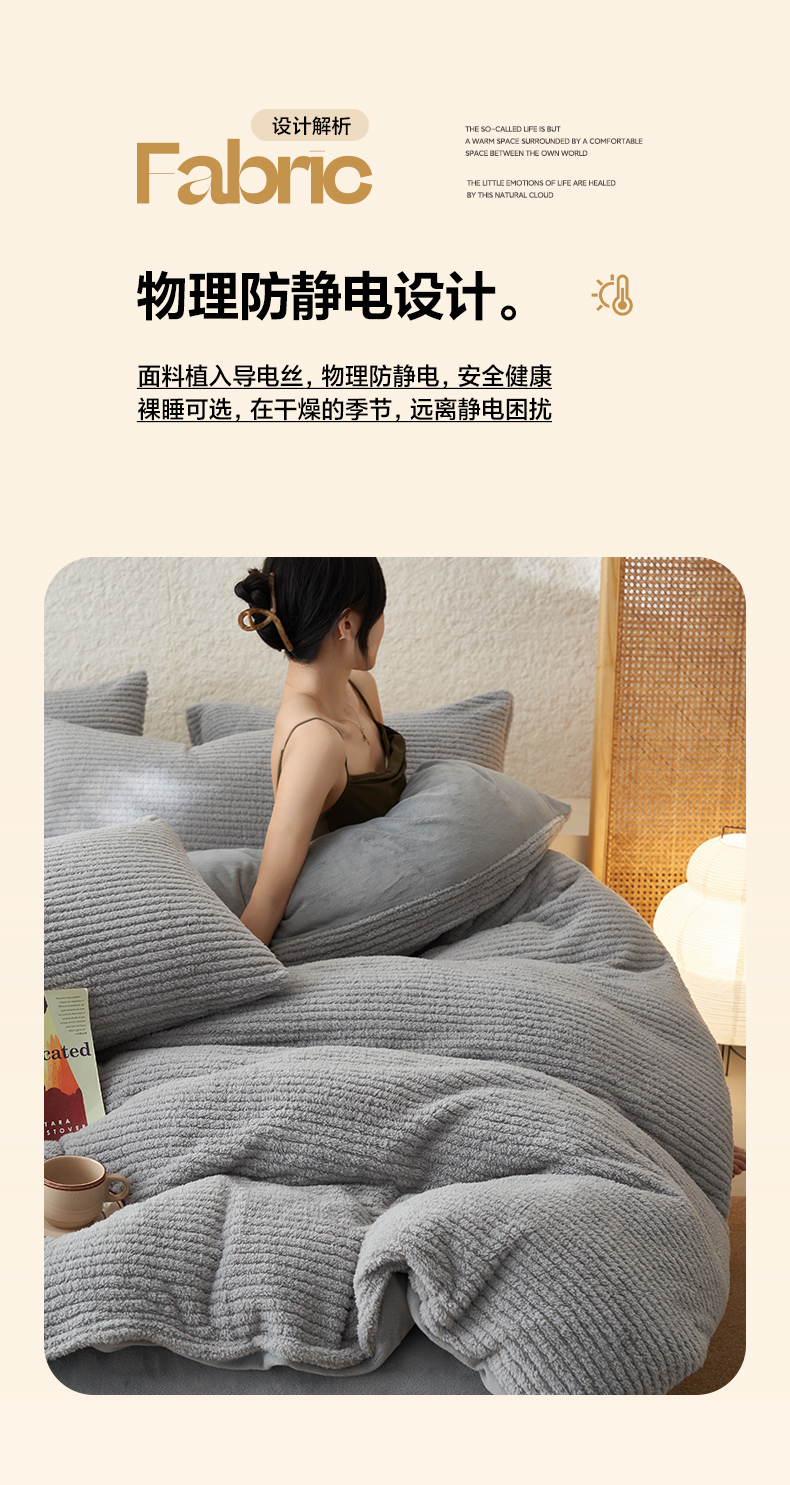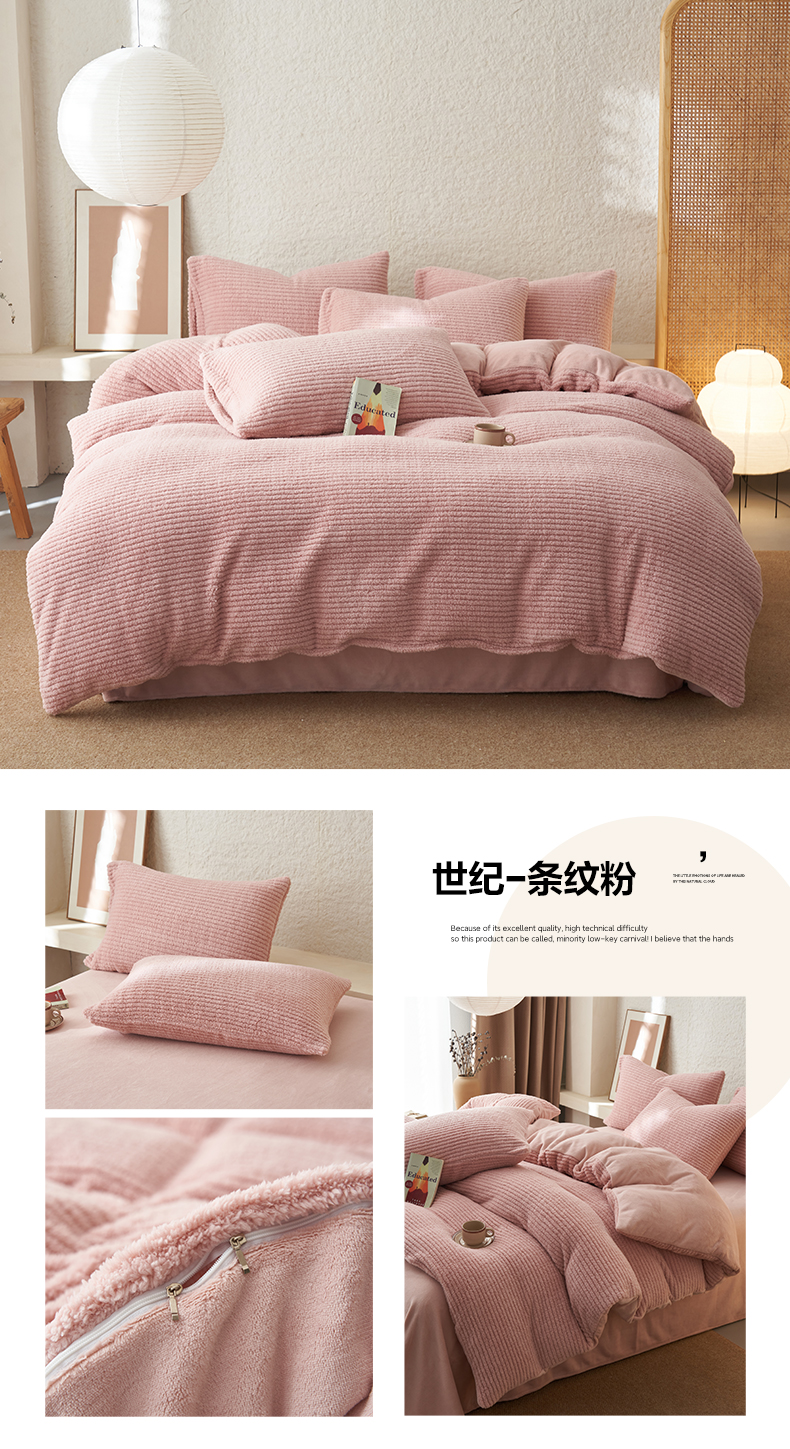 商品名称:早晨家纺 2025新款世纪款塔芙蓉牛奶绒四件套 世纪-条纹灰