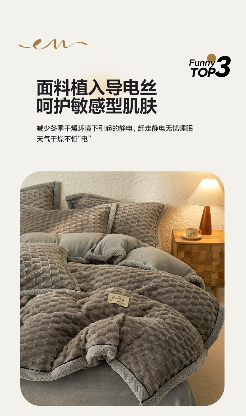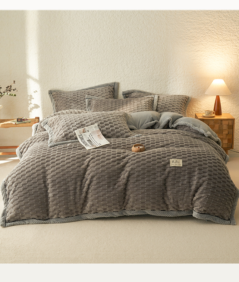 商品名称:早晨家纺 2025新款金贵款牛奶绒提花四件套 金贵-浅灰