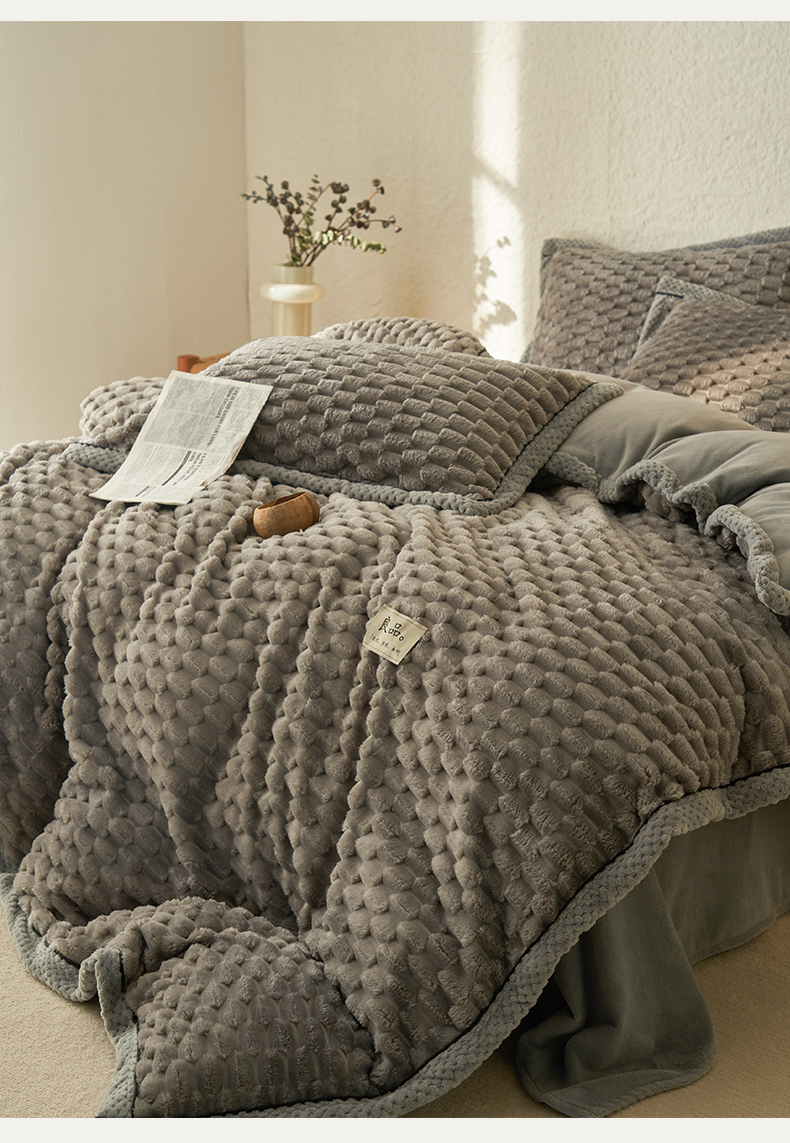 早晨家纺 2025新款金贵款牛奶绒提花四件套 金贵-浅灰