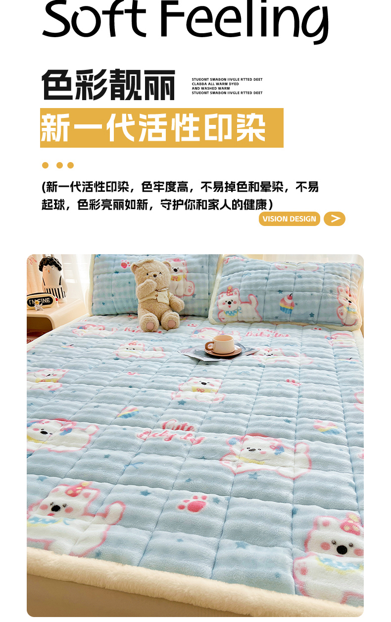 • 91家纺网 家纺一手货源 找家纺 (总)梵朴 2025新款牛奶绒泡泡兔毛绒床垫学生宿舍床褥子床护垫(大床款印花系列)-场景二,爱心蝴蝶结绿,彩虹爱心紫,彩虹哈皮狗,繁星,黄油小熊,咖底蛋糕熊,蕾丝蝴蝶结紫,梦幻太空人,趴趴熊,顽皮小熊猫,星黛露粉,星星小熊灰,音乐狗蓝--,云纹爱心粉
