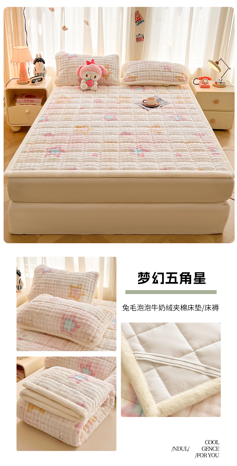 • 91家纺网 家纺一手货源 找家纺 梵朴 2025新款牛奶绒泡泡兔毛绒床垫学生宿舍床褥子床护垫大床款印花系列 繁星