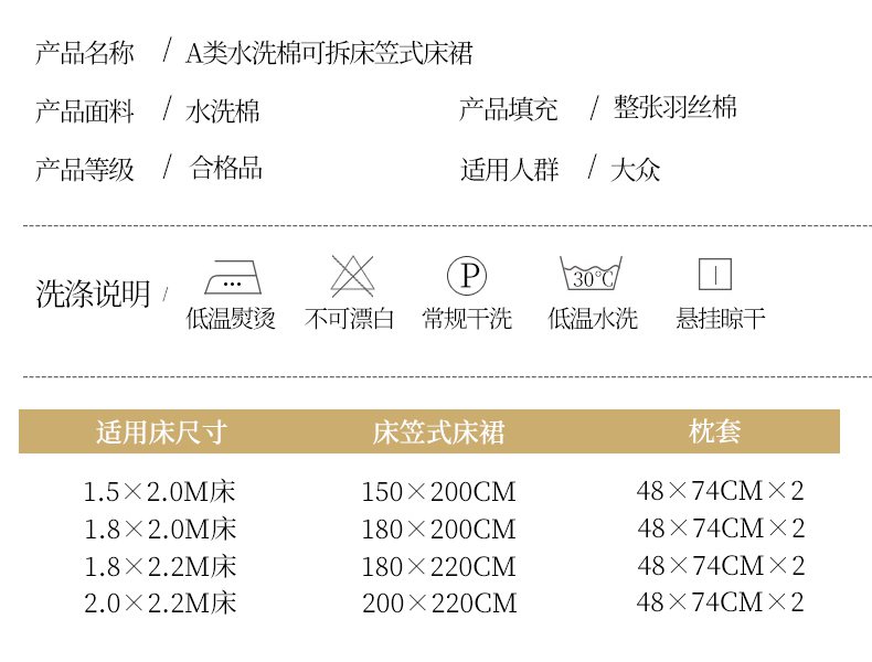 商品名称:(总)好儿喜家纺 2025新款A类水洗棉床裙-馨享系列