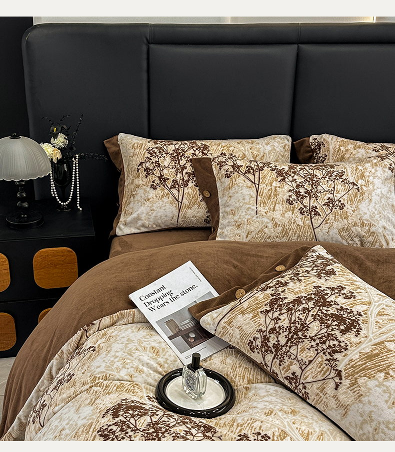 (总)晚爱家纺(原晚安家居) 2025新款A类原麻四件套纽扣款加厚双层纱仿亚麻套件四件套,繁花粉,繁花蓝,秋意浓,深秋咖,水墨江南,田园咖,绽放,浮华若梦,古堡花园咖,曼妙花园绿,紫嫣,向阳花开