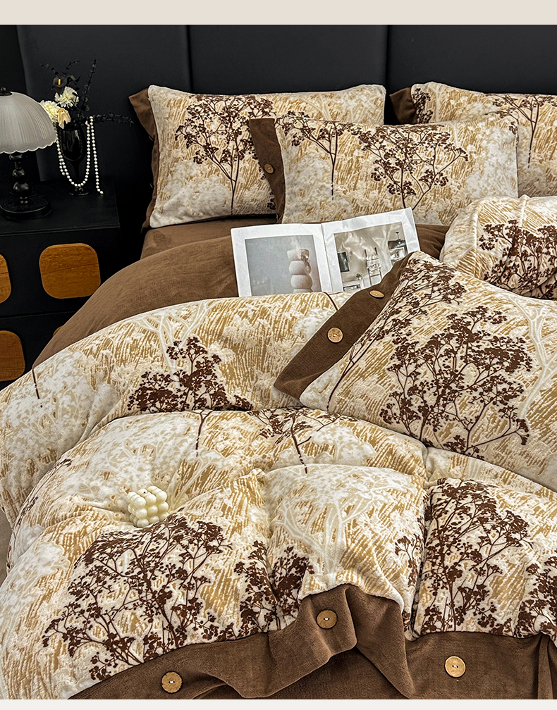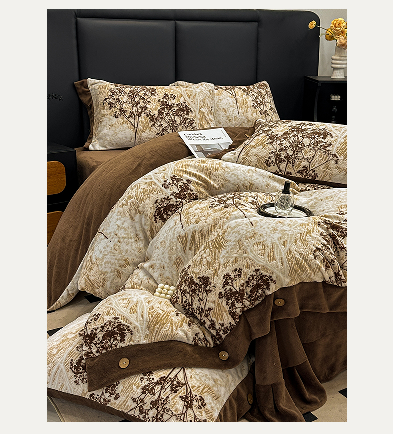 晚爱家纺(原晚安家居) 2025新款宽边纽扣款雕花绒四件套烂花立体雕花牛奶绒 西西里