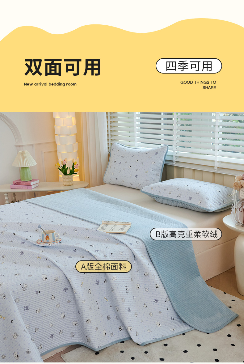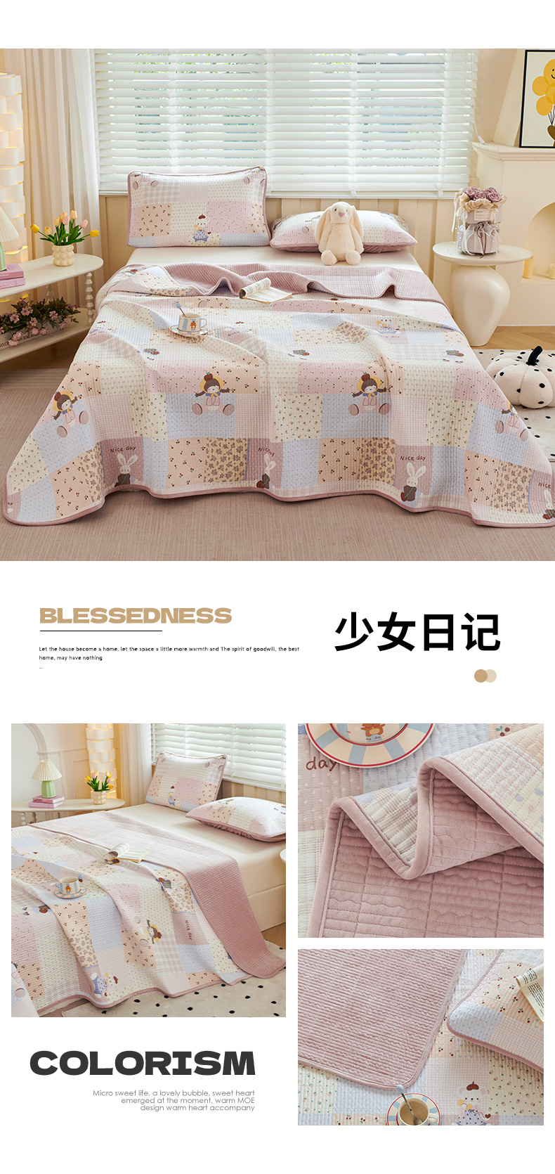 (总)缔锦家纺 2025新款高克重全棉柔软绒床盖三件套,薄荷小猫,青芷,梦恋,奶芙兔兔,秋茗,少女日记,汪汪派对,紫蔓