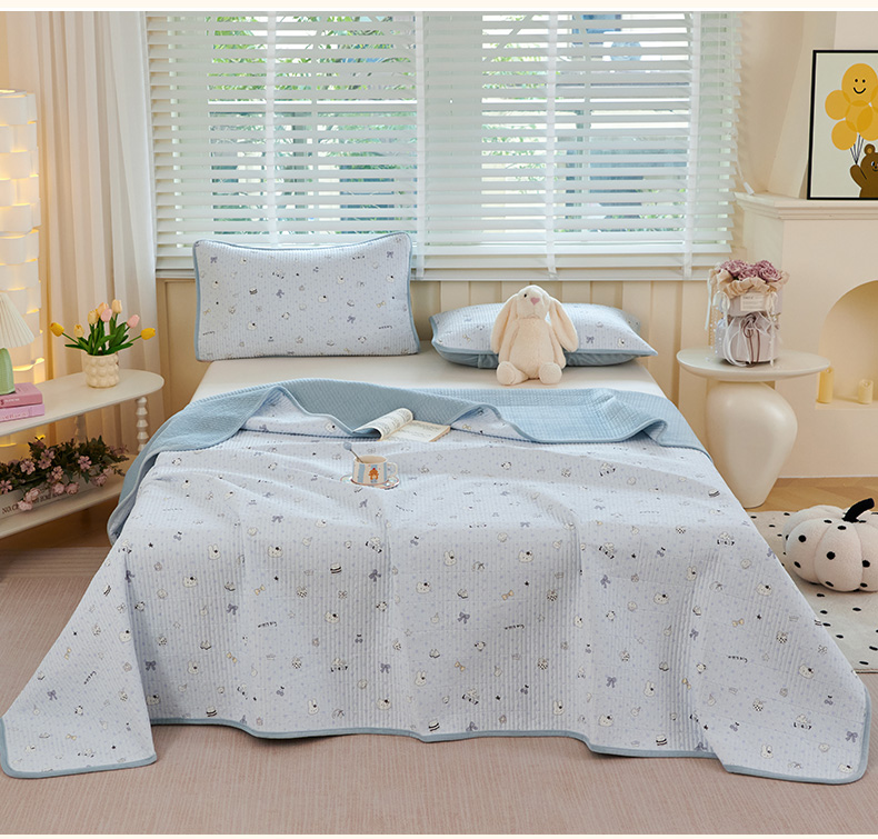 商品名称:缔锦家纺 2025新款高克重全棉柔软绒床盖三件套 薄荷小猫