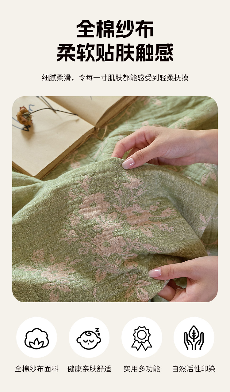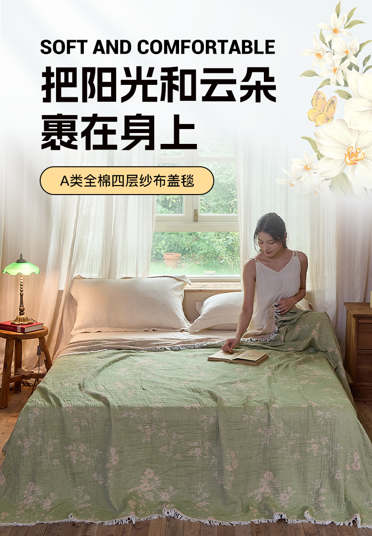(总)沐瑟家纺 2025新款亲肤柔软全棉纱布中国风盖毯毯子,百花集,翠影鸟-蓝色,花想容,花鸟韵,蝶语-绿,蝶语-淡粉,花蝶-米,比翼鸟,墨葵,绮梦花