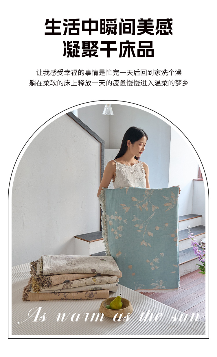 (总)沐瑟家纺 2025新款简约风多功能纱布盖毯纱布毯子毛巾被床盖沙发巾单毯枕巾枕套三件套,H本色,H橙色,H咖色,大马士革本色