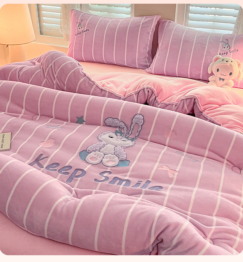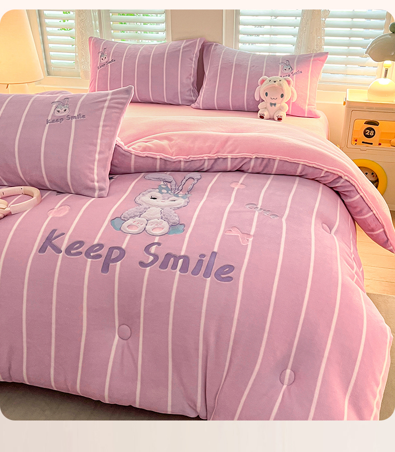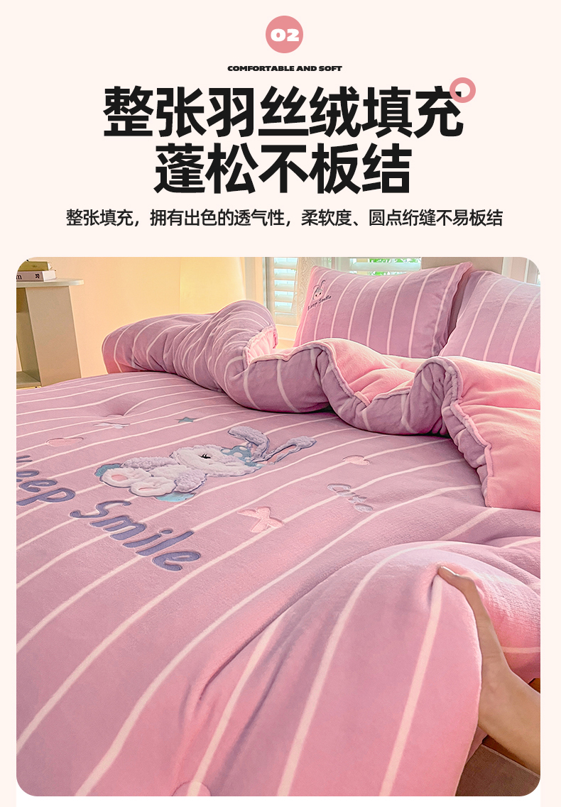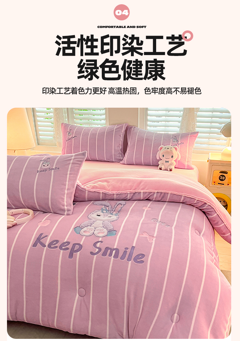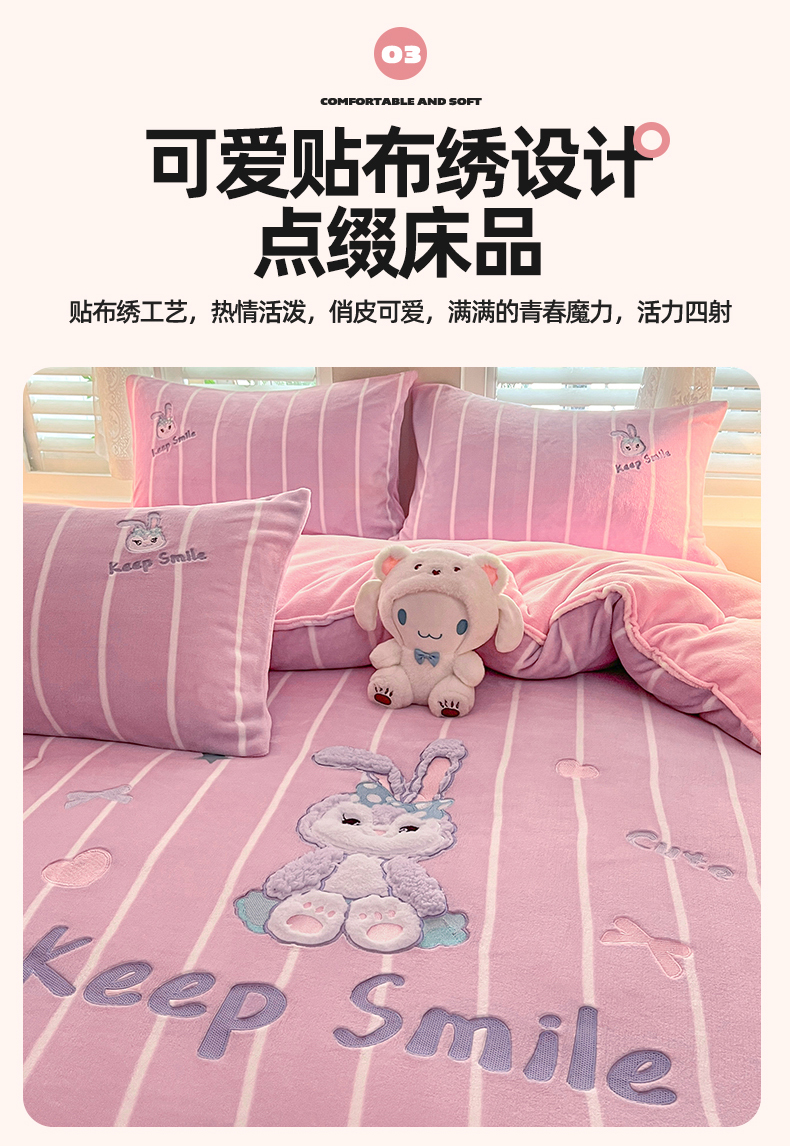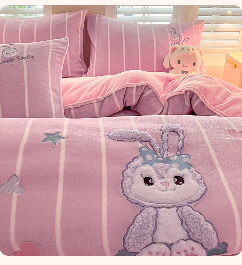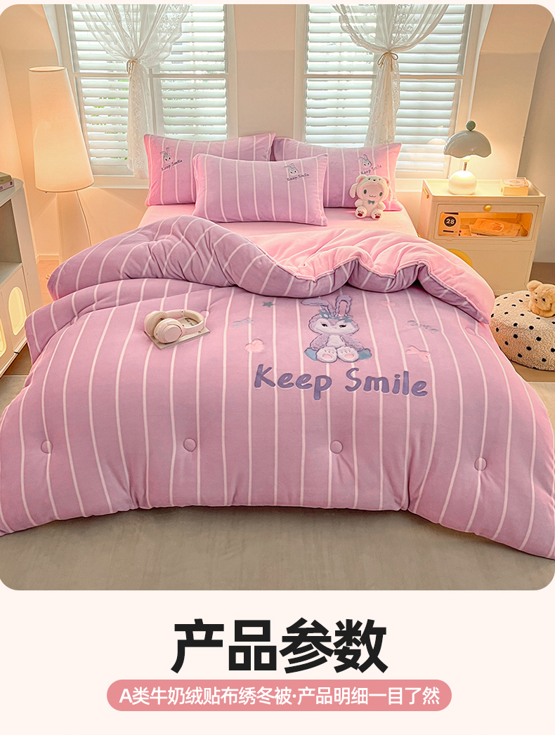 商品名称:换种生活 2025新款A类牛奶绒贴布绣冬被被子被芯 治愈萌兔-粉紫色