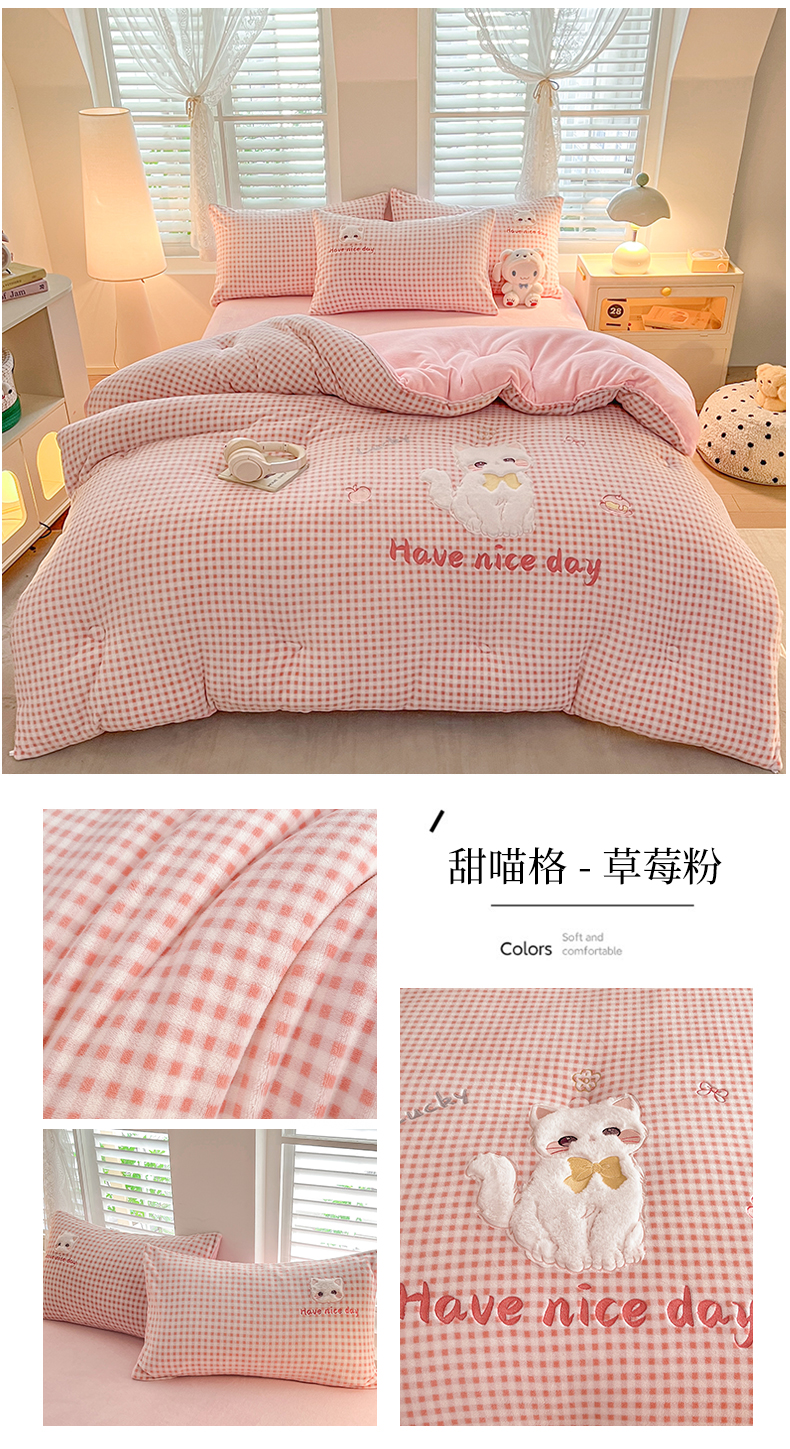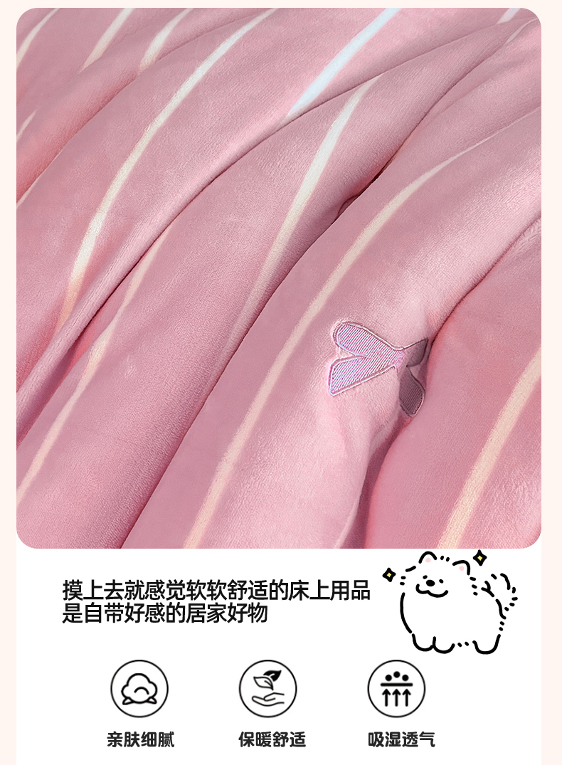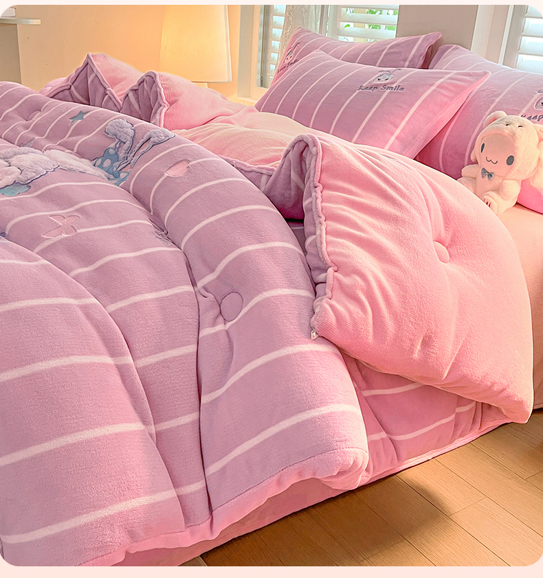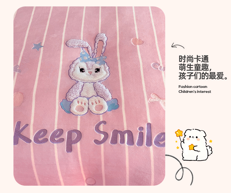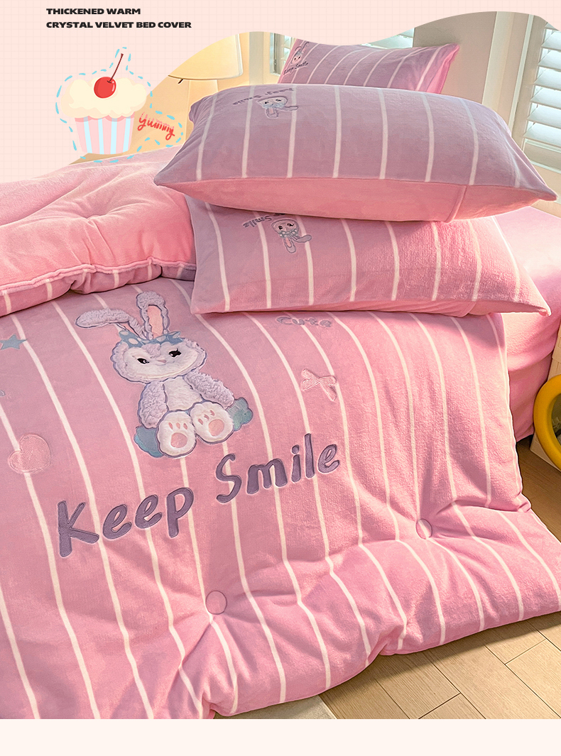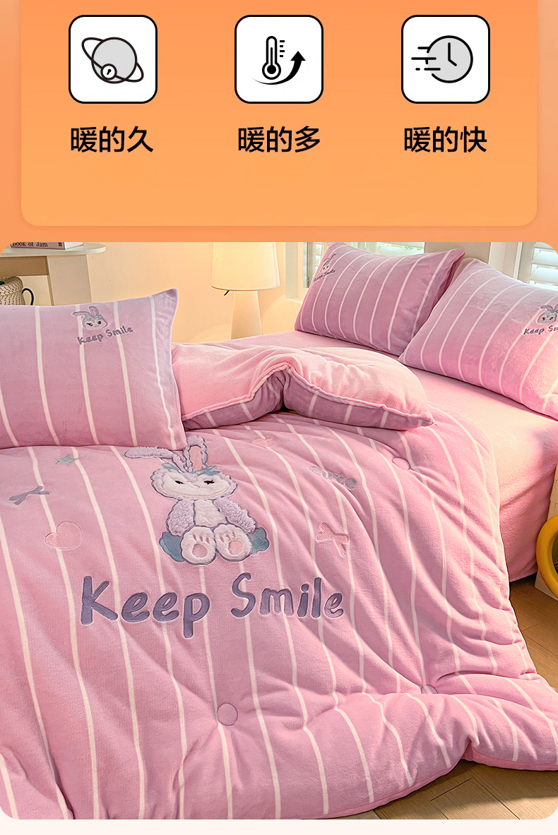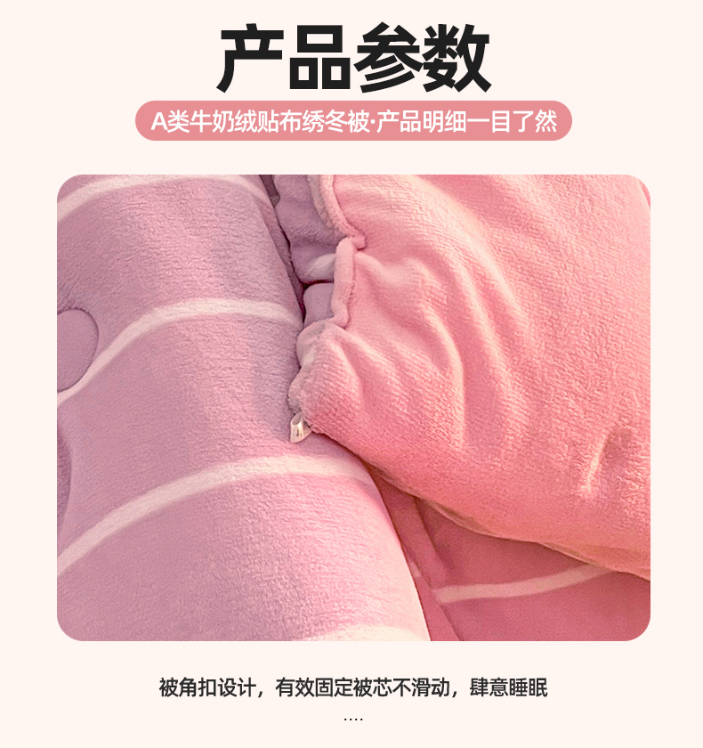 商品名称:换种生活 2025新款A类牛奶绒贴布绣冬被被子被芯 治愈萌兔-粉紫色