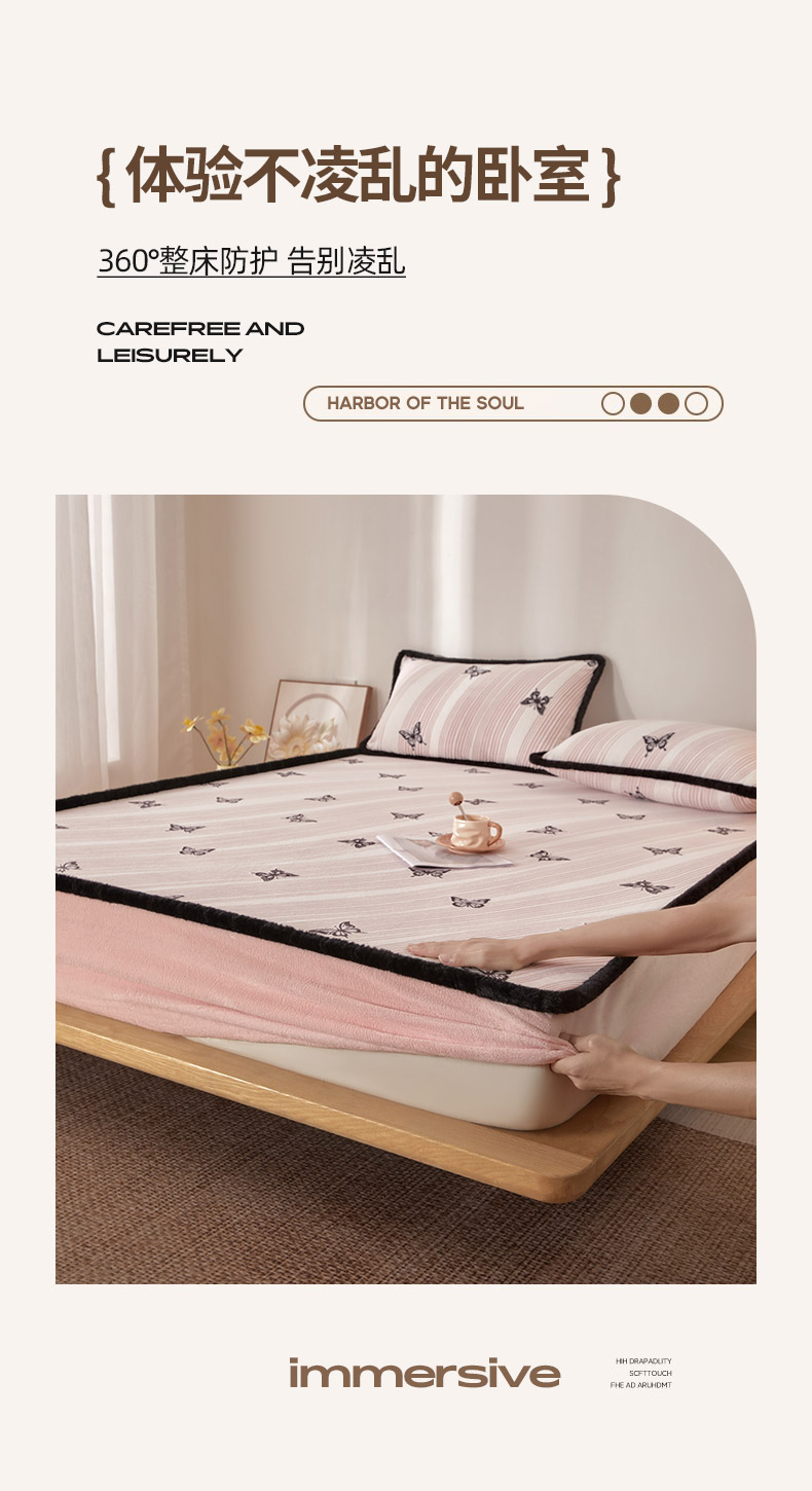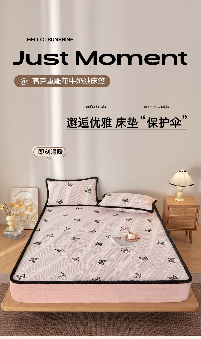 • 91家纺网 家纺一手货源 找家纺 绒城 2025新款高克重雕花牛奶绒单床笠床笠单件 慕雪