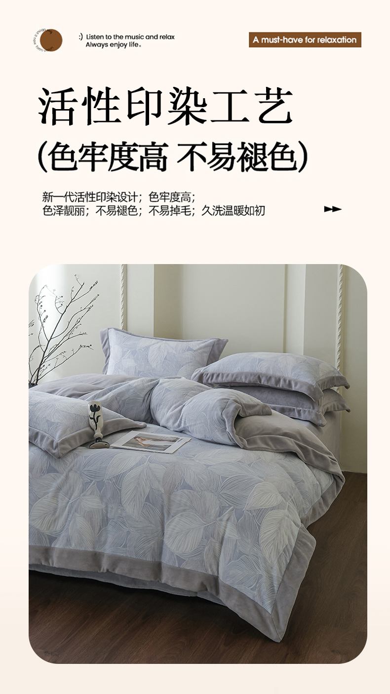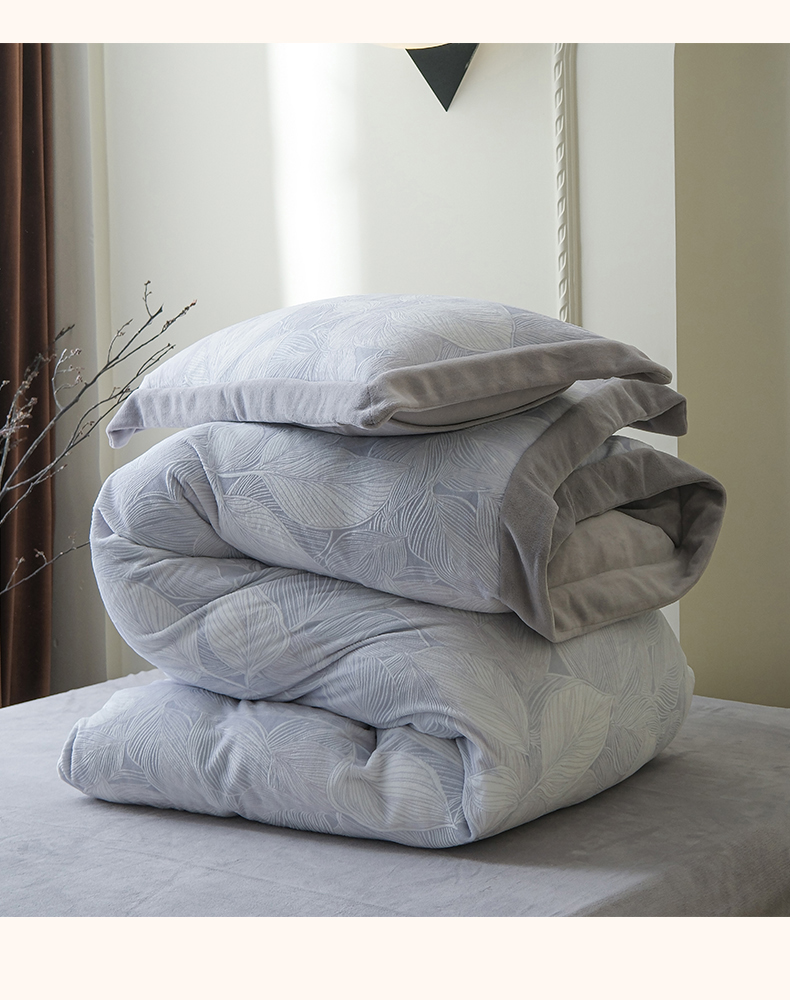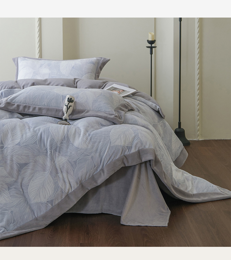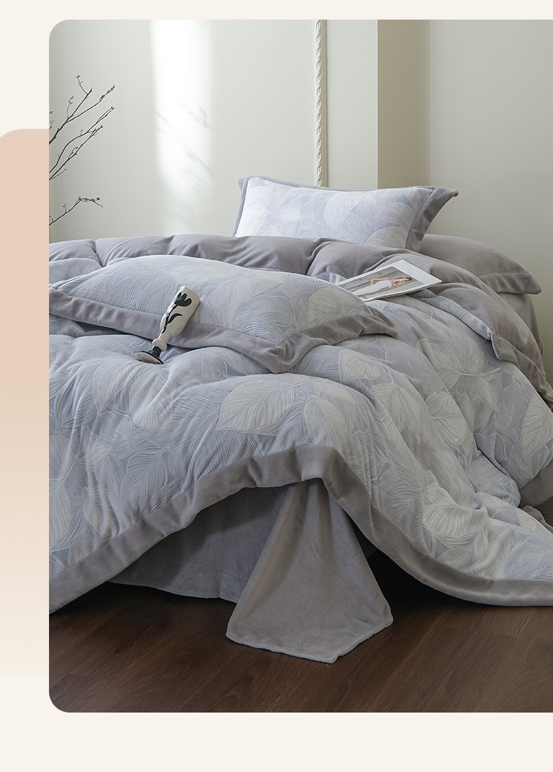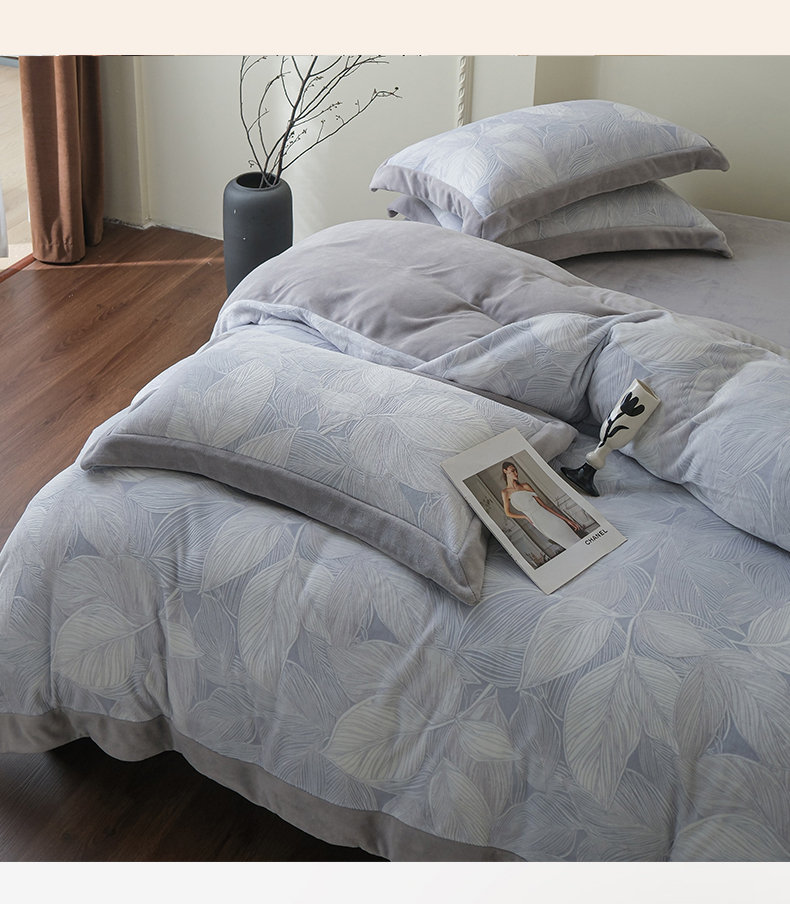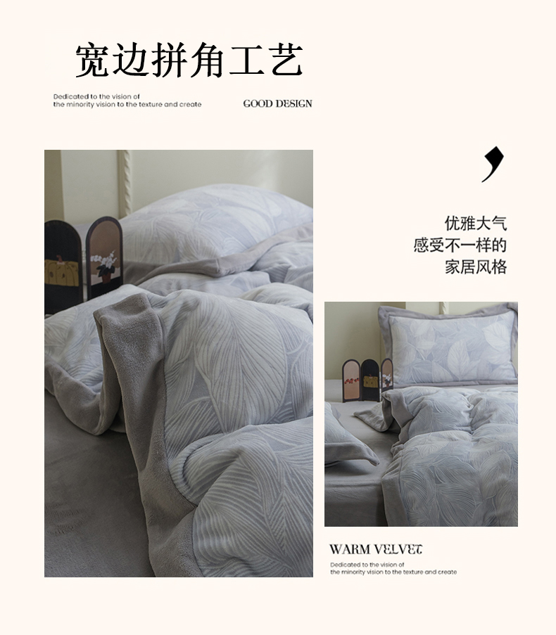 米奈家居 2025新款立体雕花拼角款牛奶绒四件套 秋影-灰蓝