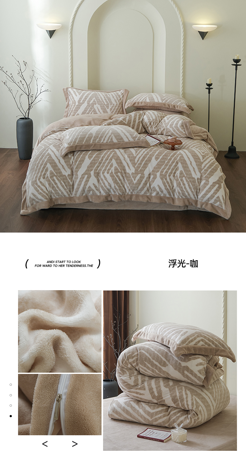 (总)米奈家居 2024新款A类牛奶雕花绒四件套-瑞丽,巴赫(卡其),巴赫(紫粉),花漾(淡雅粉),花漾(香槟),水墨(豆沙),水墨(卡其),邂逅(咖色),邂逅(绿色)