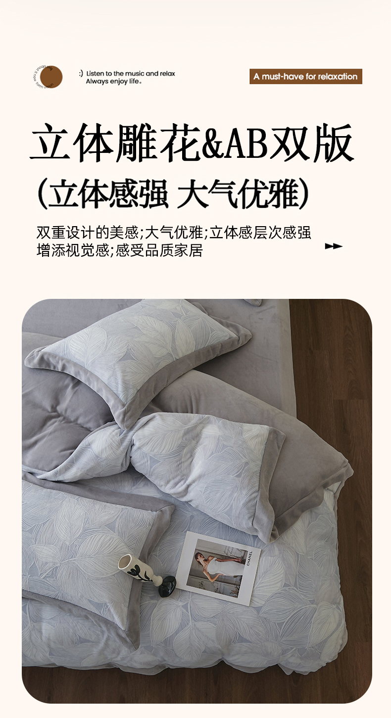 (总)米奈家居 2025新款立体雕花拼角款牛奶绒四件套,浮光-灰,浮光-咖,花间集-豆沙,花间集-蓝,花如玉-蓝,花如玉-驼,秋影-粉,秋影-灰蓝