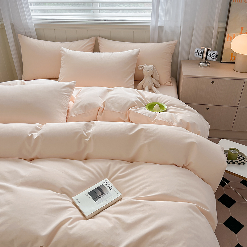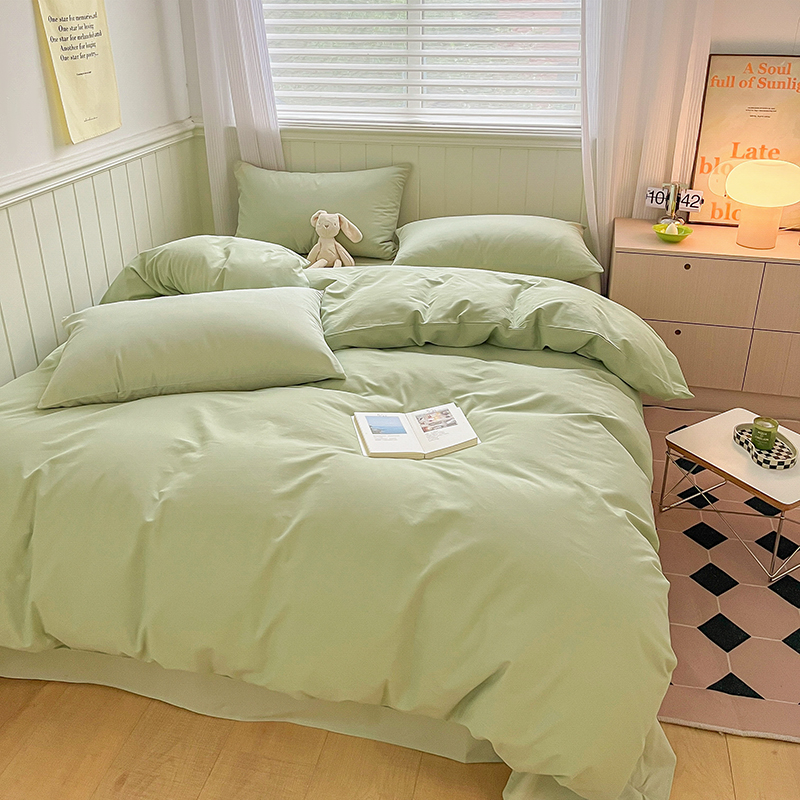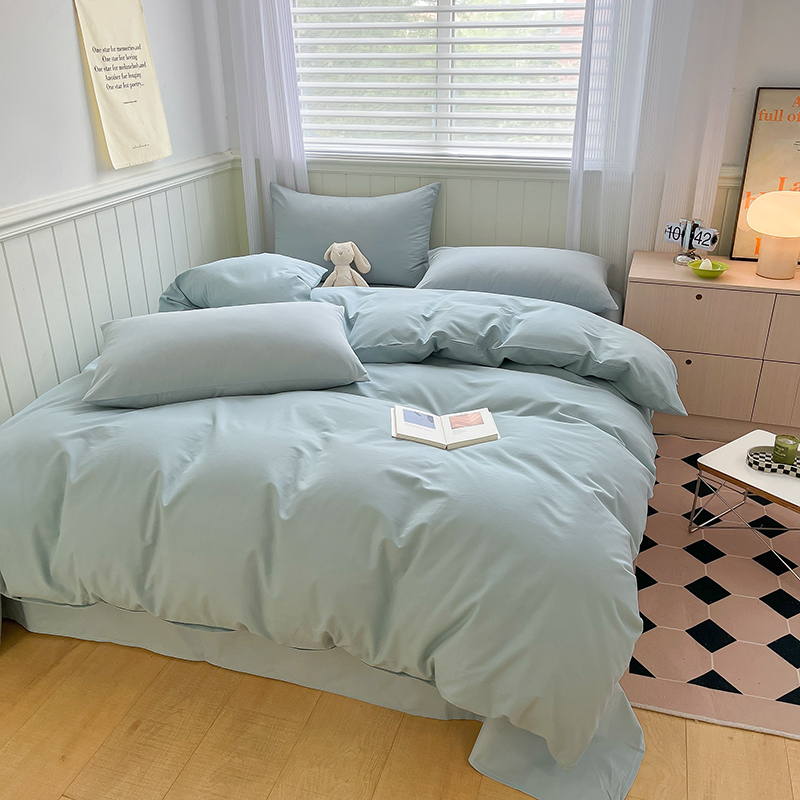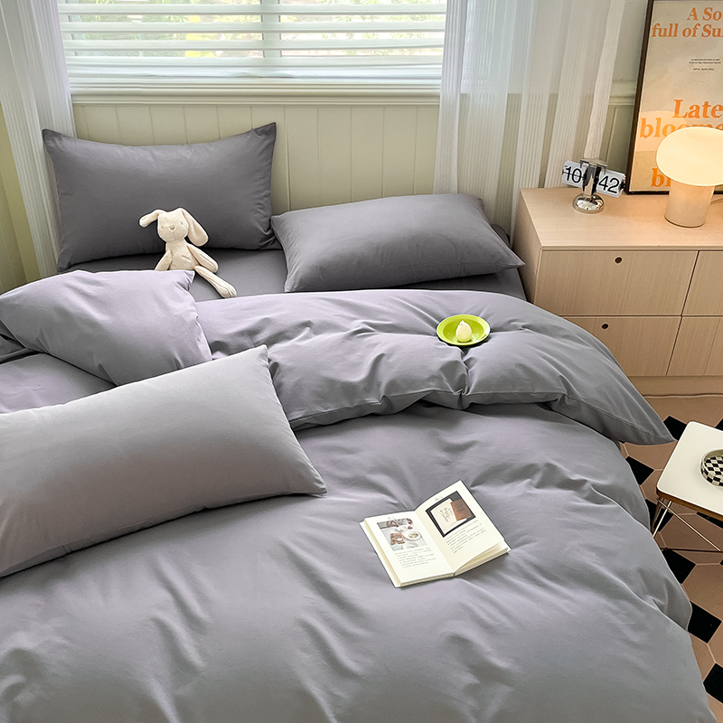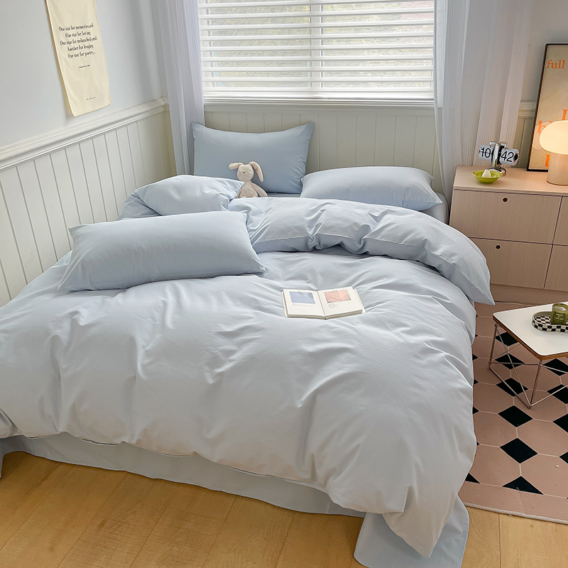 (总)蓝邻家纺 2025新款A类全棉纯棉水洗棉纯色贴标系列四件套-风格二,粉末蓝,高级灰,公主粉,贵族白,焦糖色,柠檬黄,牛仔兰,千黛紫,时尚绿,丝绒绿,小雏菊,星辰灰,优雅紫