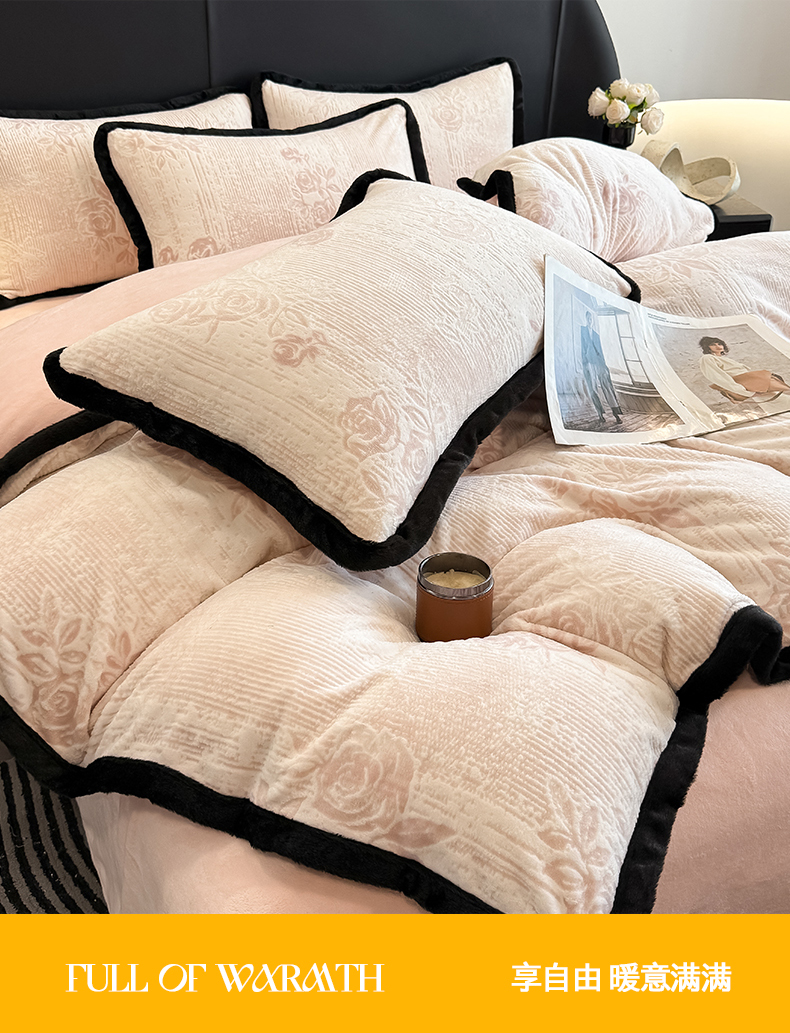 当前位置: 91家纺网 > 商品网购 > 床品套件 > 四件套 > 雕花绒四件套 > 典曼家纺 2025新款A类宽包边雕花绒四件套 柔曼花踪