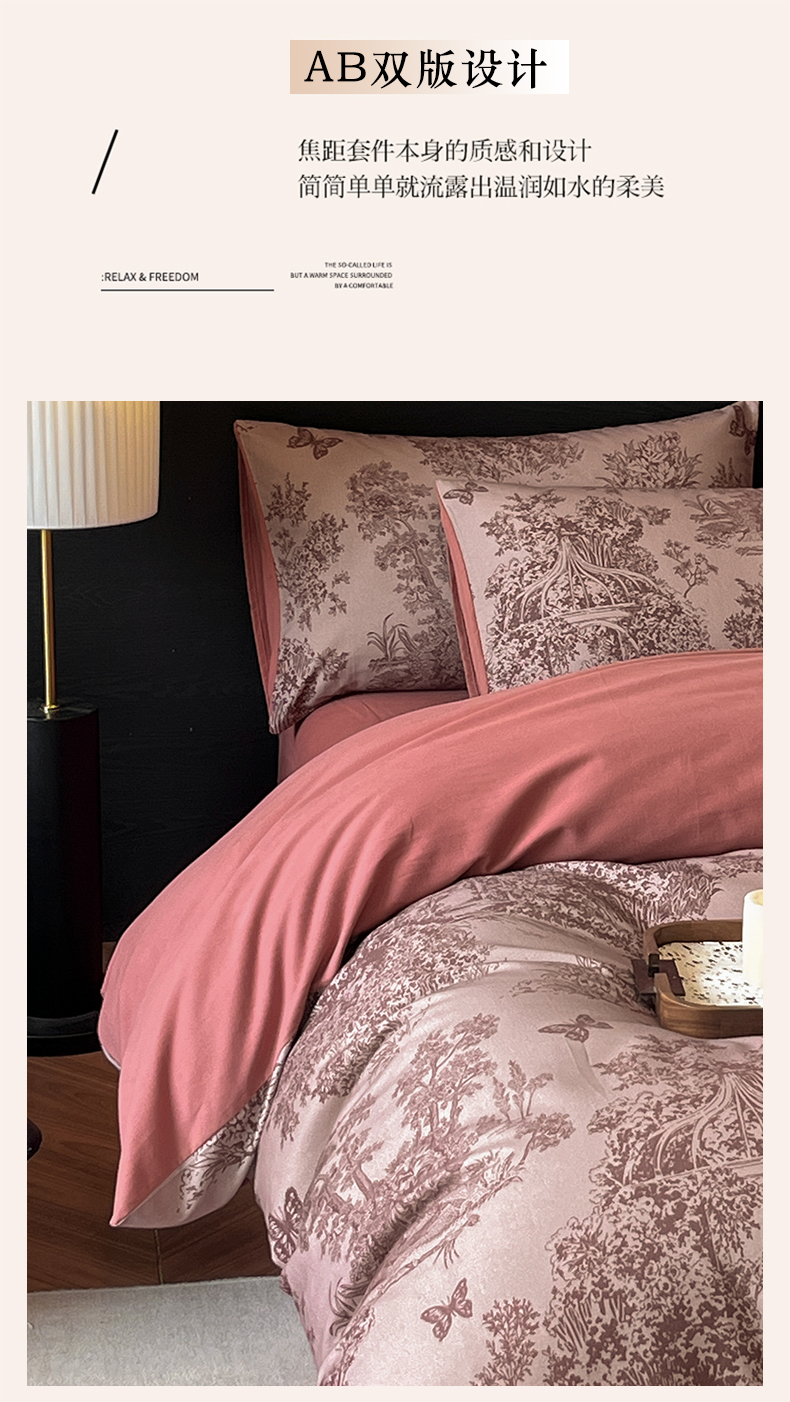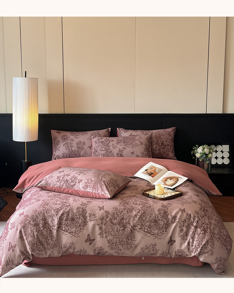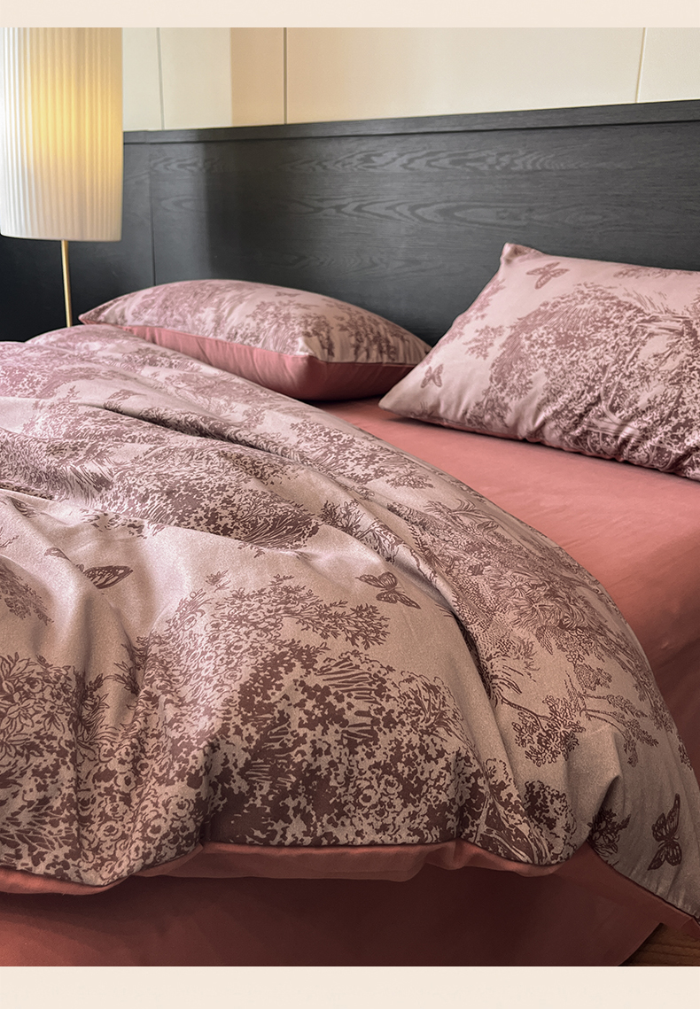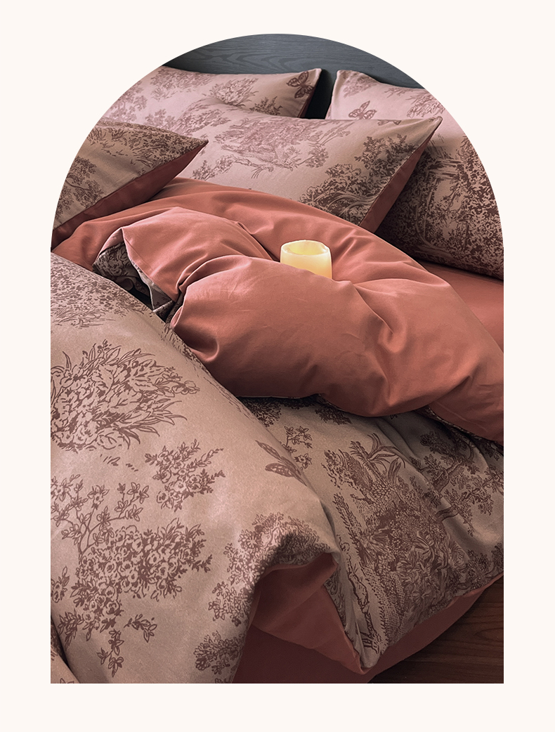 当前位置: 91家纺网 > 商品网购 > 床品套件 > 四件套 > 全棉普通四件套 > 典曼家纺 2025新品法式复古全棉A类磨毛四件套 春烟-红
