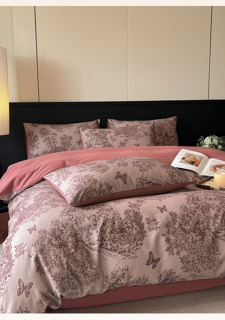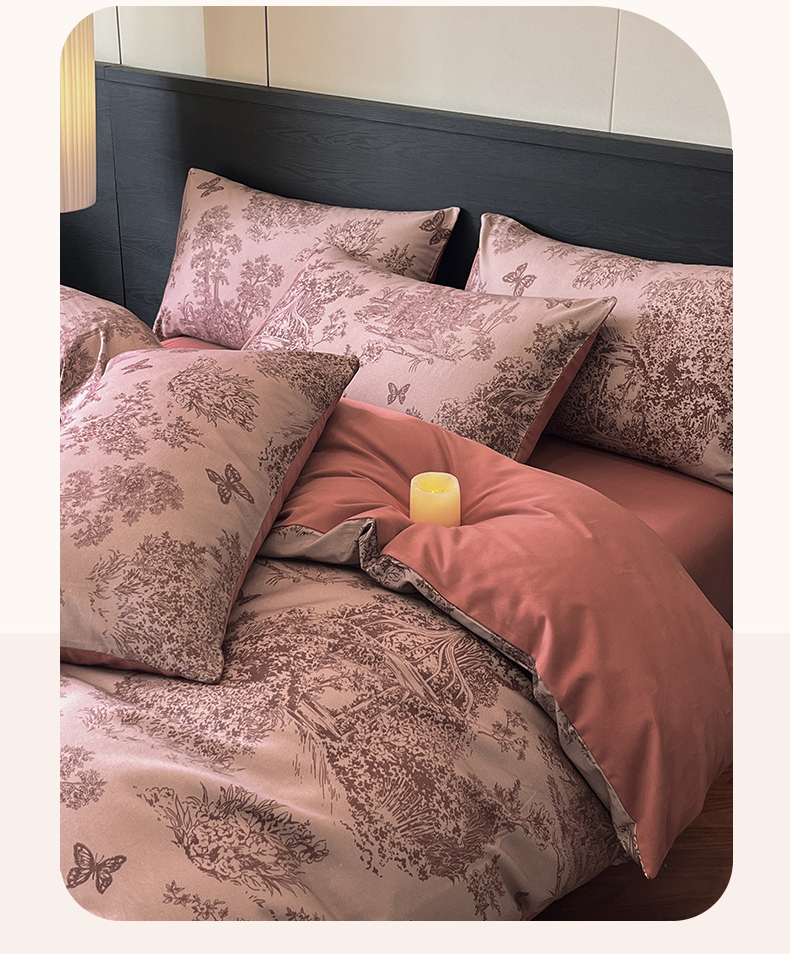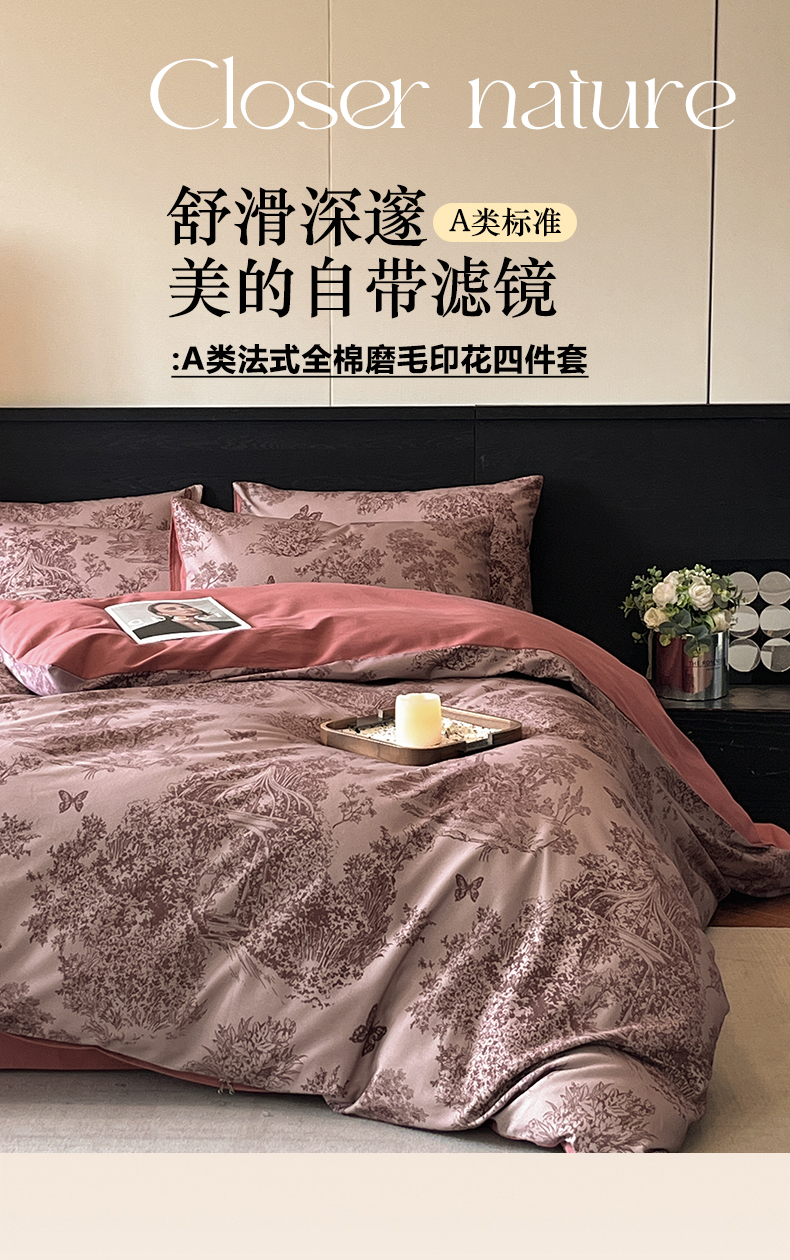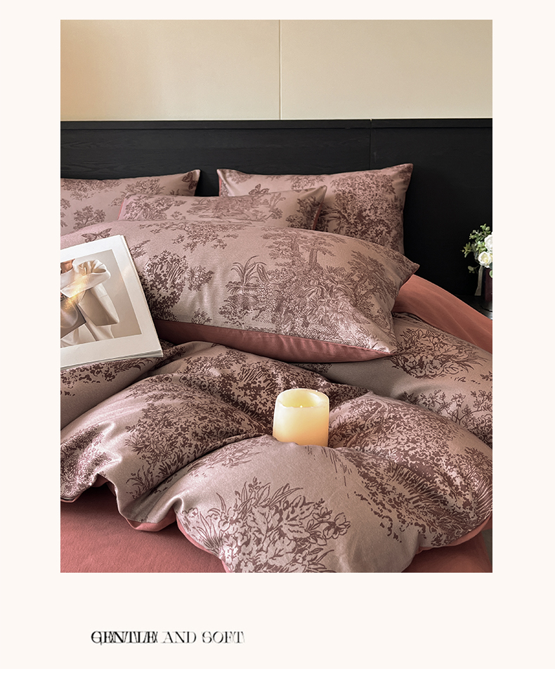 当前位置: 91家纺网 > 商品网购 > 床品套件 > 四件套 > 全棉普通四件套 > 典曼家纺 2025新品法式复古全棉A类磨毛四件套 春烟-红