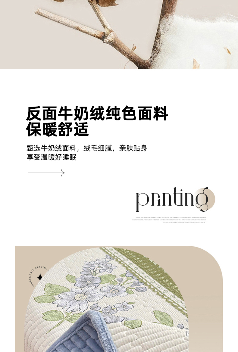 • 91家纺网 家纺一手货源 找家纺 金艾草 2025新款一面绒一面棉榻榻米大炕盖单件棉加绒床盖三件套A版全棉印花B版加厚牛奶绒 (提供买家秀) 风之恋