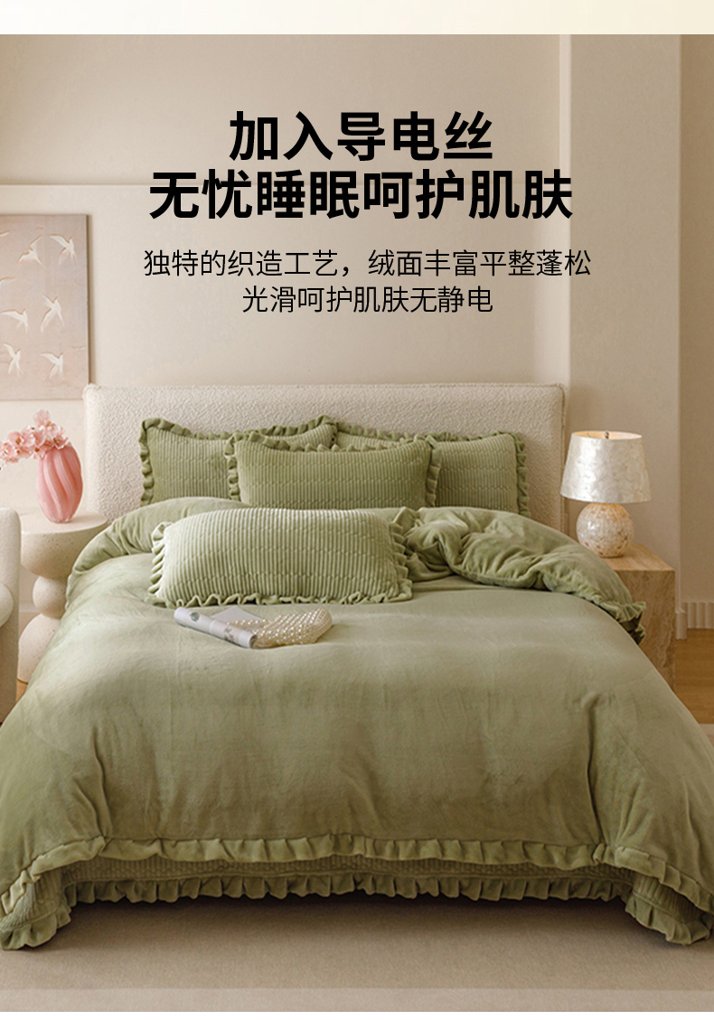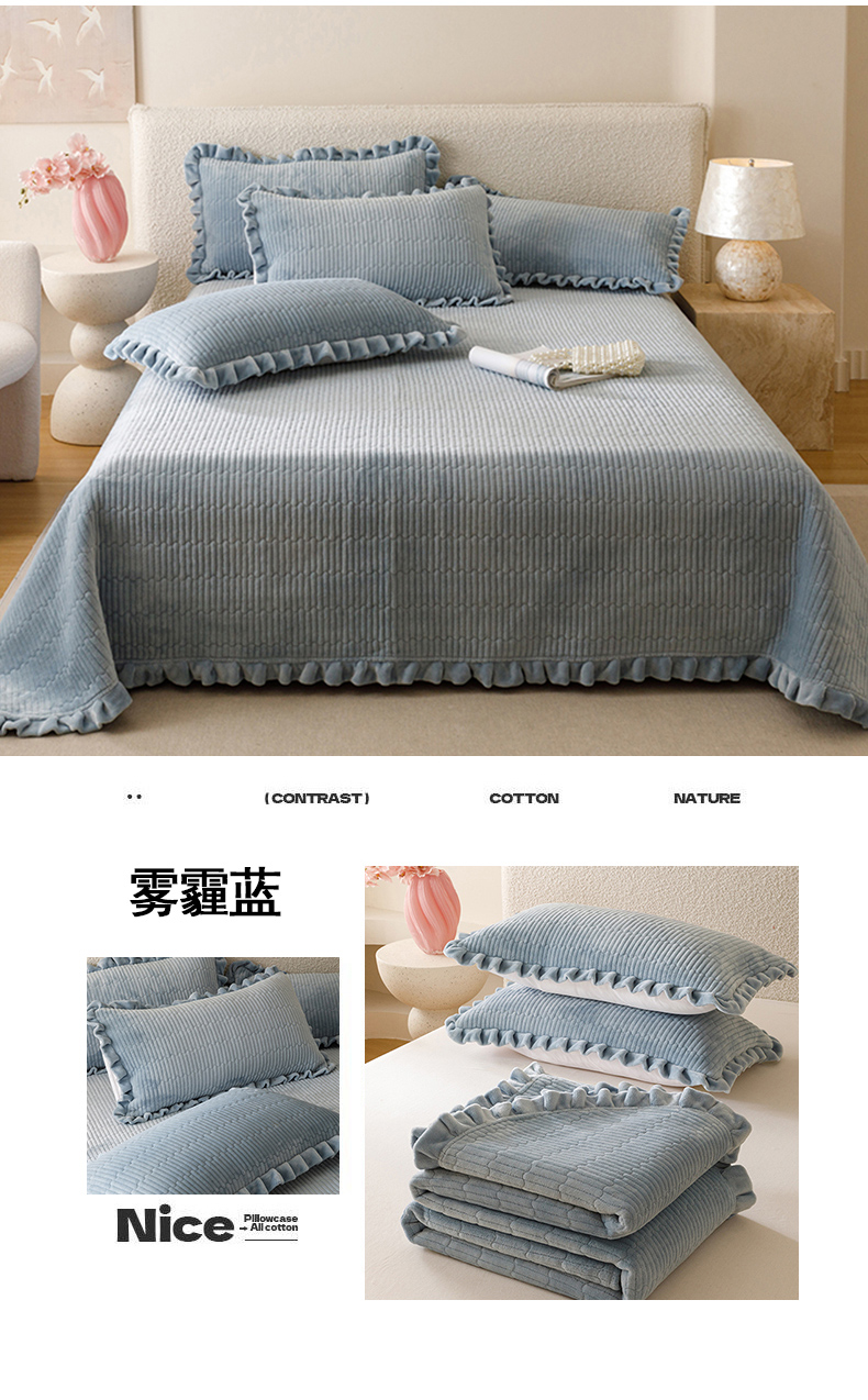 商品名称:(总)沐晴家纺 2025新款纯色牛奶绒法式床盖四件套花边床盖三件套单被套