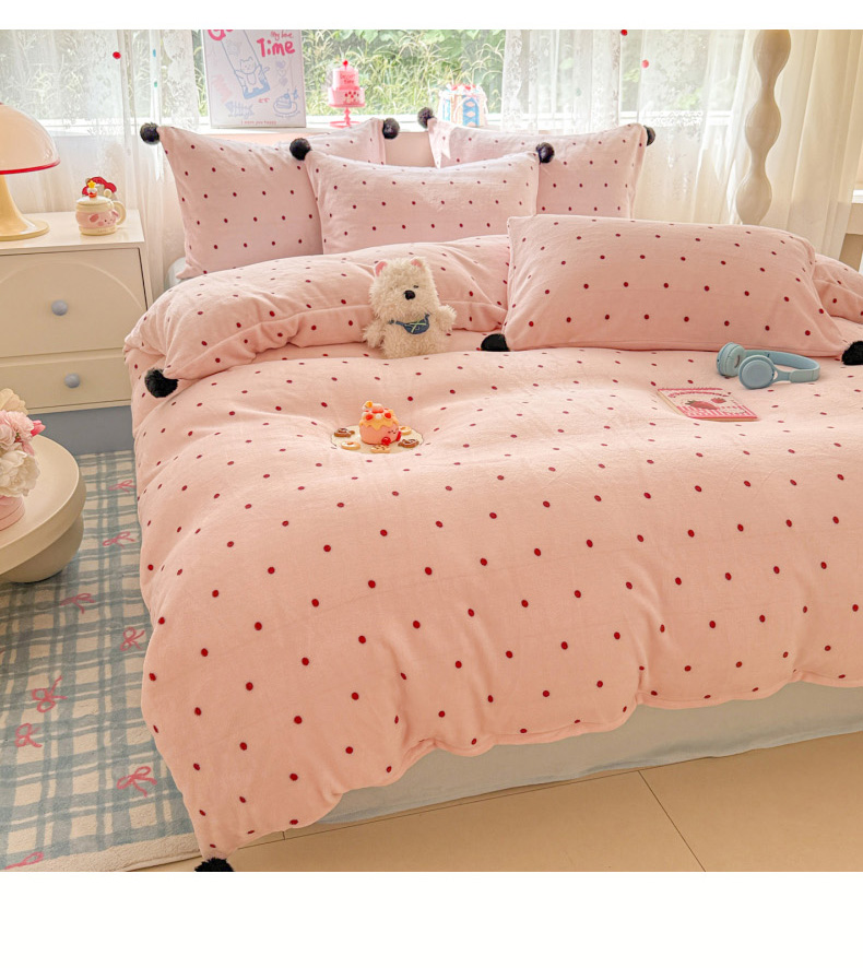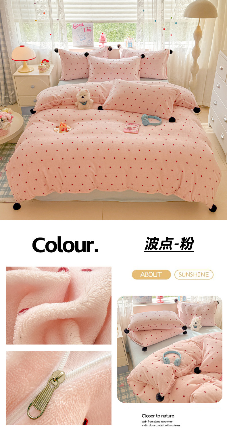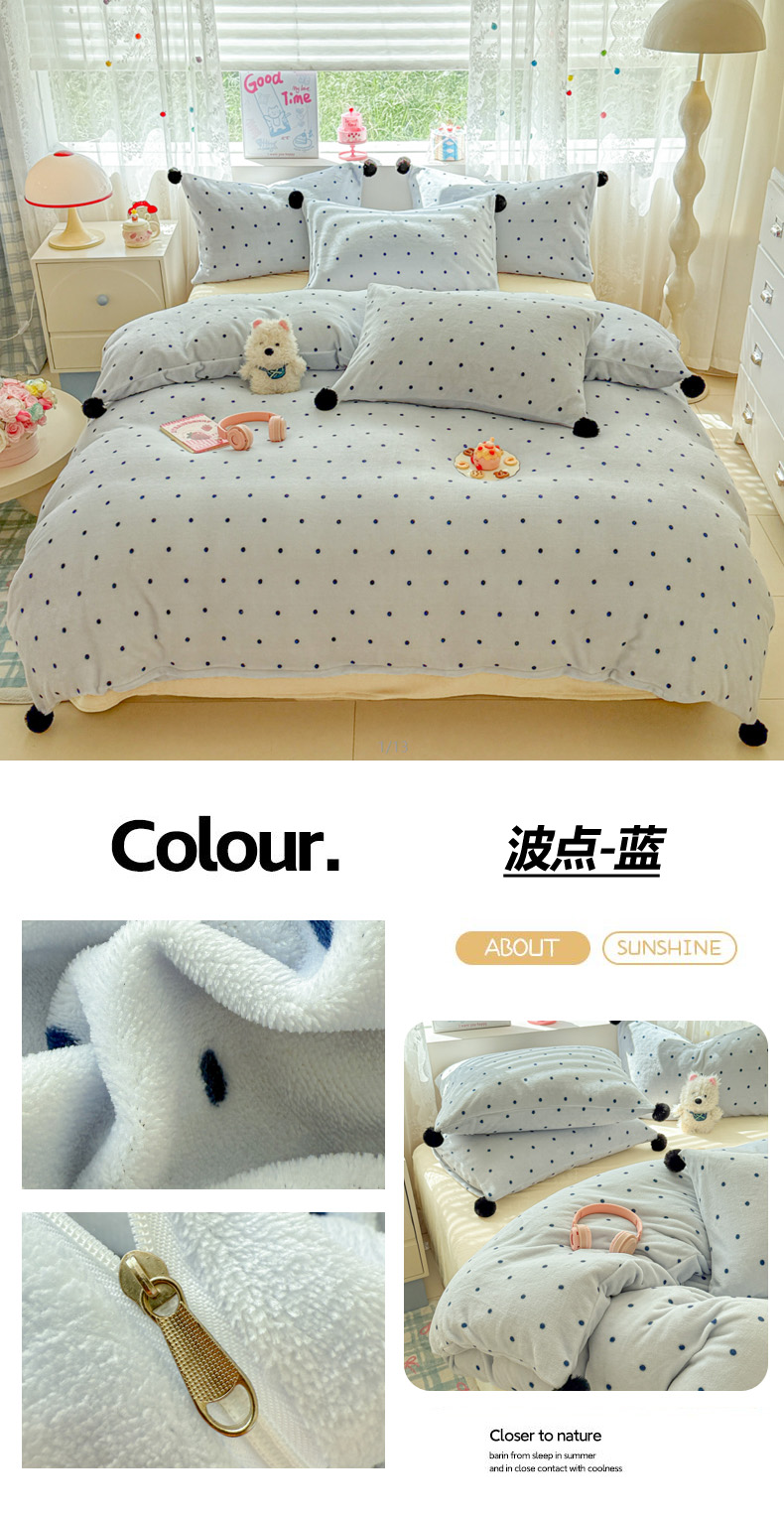 当前位置: 91家纺网 > 商品网购 > 床品套件 > 四件套 > 牛奶绒四件套 > 米可 2025秋冬新品混搭波点高克重牛奶绒毛球款单被套 波点-奶白