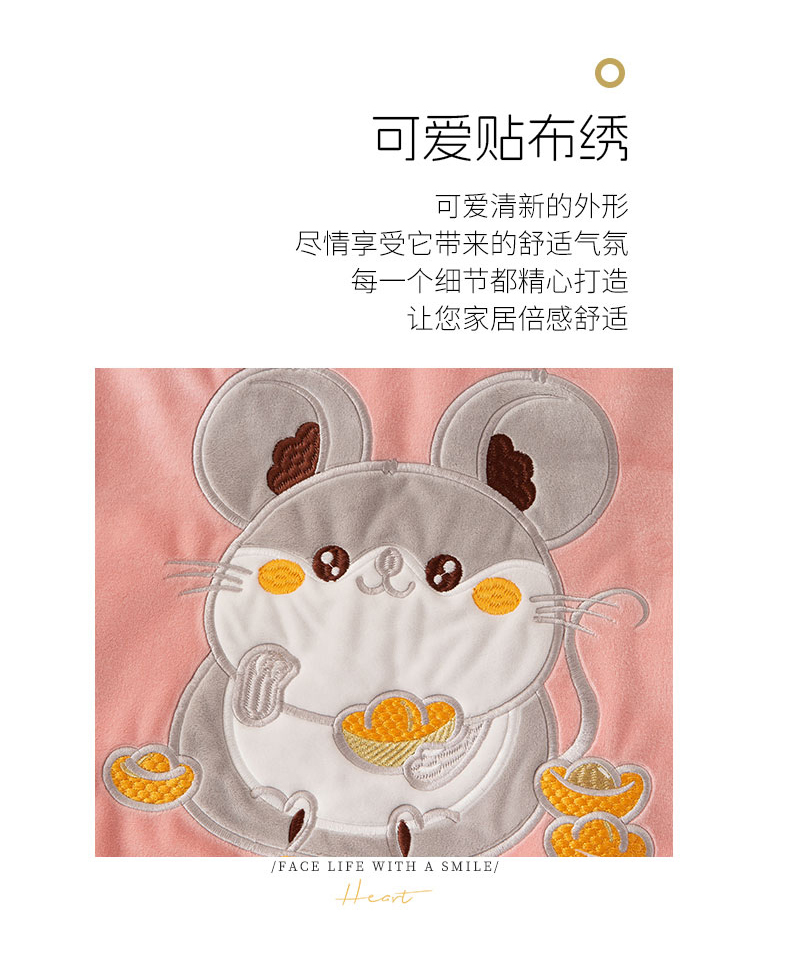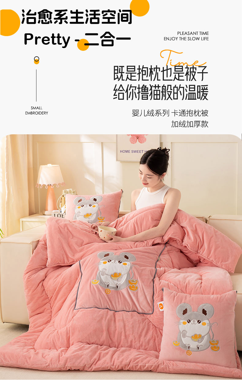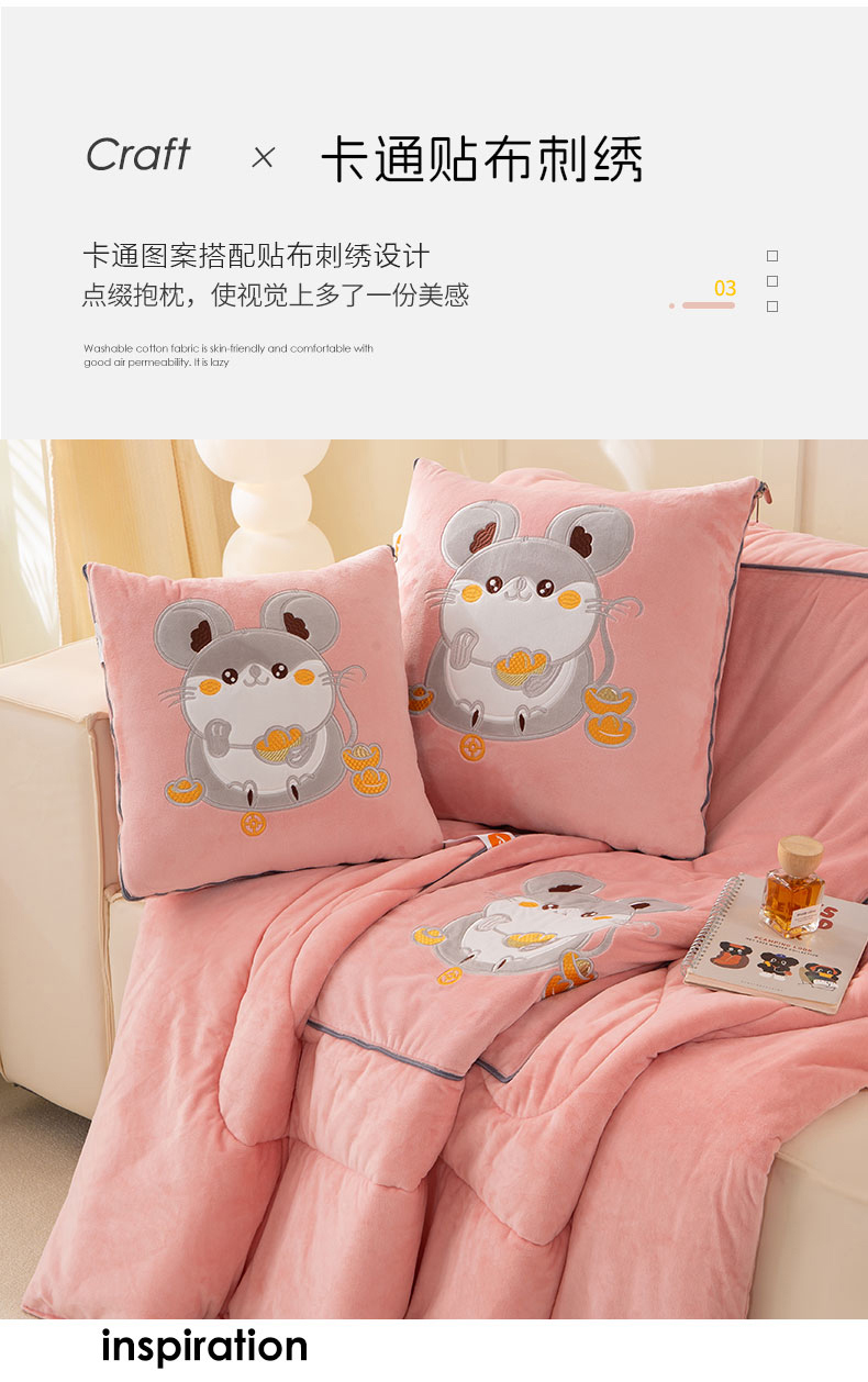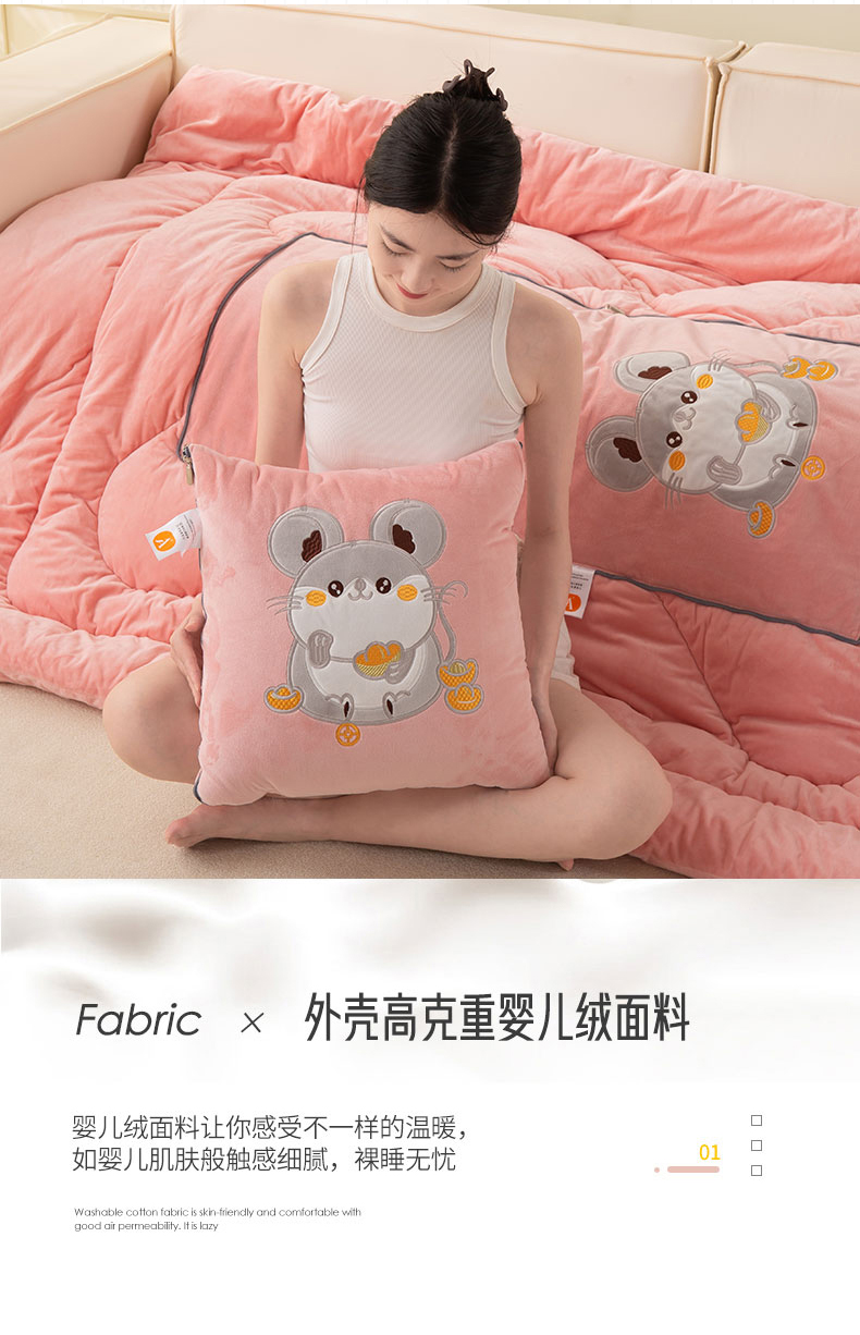 商品名称:多今家纺 2025新款加厚婴儿绒贴布刺绣抱枕被子-鼠我有钱系列 鼠我有钱-薄荷粉
